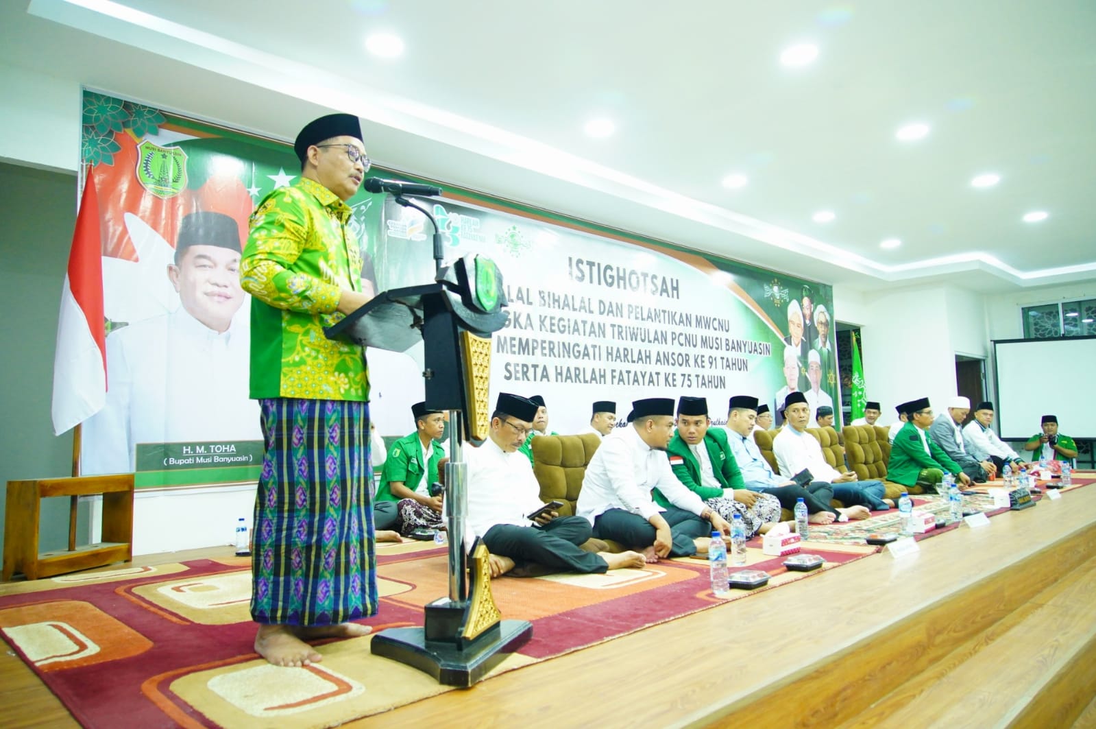 Bupati Muba H M Toha dalam hal ini diwakili langsung oleh Wakil Bupati Muba Kyai Rohman, hadir ldalam acara Istighotsah Halal Bihalal dan Pelantikan Majelis Wakil Cabang Nahdlatul Ulama (MWCNU). Dalam Rangka Kegiatan Triwulan Pengurus Cabang Nahdlatul Ulama (PCNU) Muba dan Memperingati Hari Lahir Ansor ke-91 Tahun serta Hari Lahir Fatayat ke-75 Tahun, Senin (19/5/2025) di Aula Kantor Lt.II PCNU Musi Banyuasin – Kecamatan Sekayu.