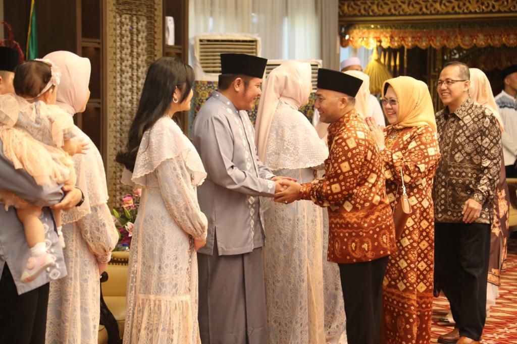 PALEMBANG– Pj Bupati Muba Apriyadi Mahmud beserta istri Asna Aini Apriyadi, Forkopimda hingga Kepala OPD Pemkab Muba, Minggu (23/4/2023) silaturahmi ke kediaman dinas Griya Agung Gubernur Sumsel Herman Deru (HD) dan Wakil Gubernur Sumsel Mawardi Yahya.
