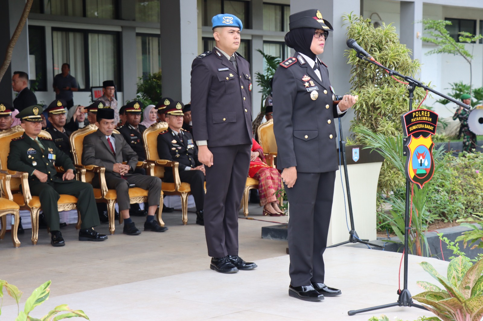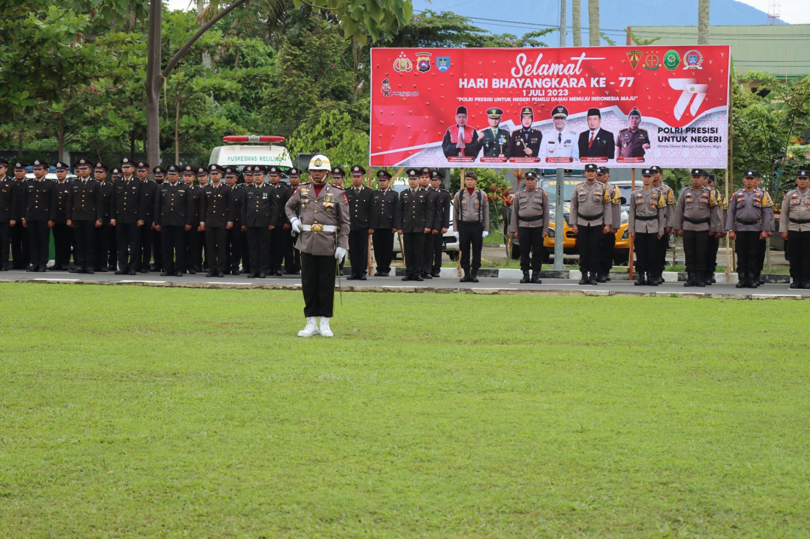 Upacara peringatan Hari Bhayangkara ke 77 yang mengusung tema “Polri Presisi Untuk Negeri Pemilu Damai Menuju Indonesia Maju” ini juga turut di hadiri oleh pimpinan daerah Kota Payakumbuh di antaranya Pj. Walikota Payakumbuh Drs.Rida Ananda,M.Si, Ketua DPRD Hamdi Agus, Dandim 0306/50 Kota, Danyon 131/Brs, Dandenzipur 131/Ps, para Kepala OPD Kota Payakumbuh, pejabat utama Polres Payakumbuh serta segenap peserta upacara dari TNI/Polri, dinas terkait juga pelajar