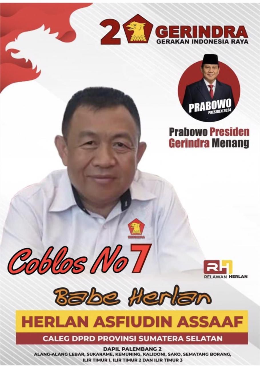 Hari baik dan bulan baik ini juga saatnya untuk kampanye politik. saya Herlan Asfiudin Assaaf ikut menjadi calon legislatif provinsi sumsel dapil sumsel 2 dari partai Gerindra No 7. Mohon dukungan dan kepercayaannya untuk bisa berkontribusi kepada masyarakat sumsel khususnya sesuai dengan pengalaman saya yaitu bidang pariwisata. Kita harus yakin yakin dan percaya bahwa sektor pariwisata ini dapat ikut mensejahterakan rakyat dengan manfaat yang sangat signifikan untuk ekonomi kreatif dan juga pengembangan UMKM,” ungkap nya.