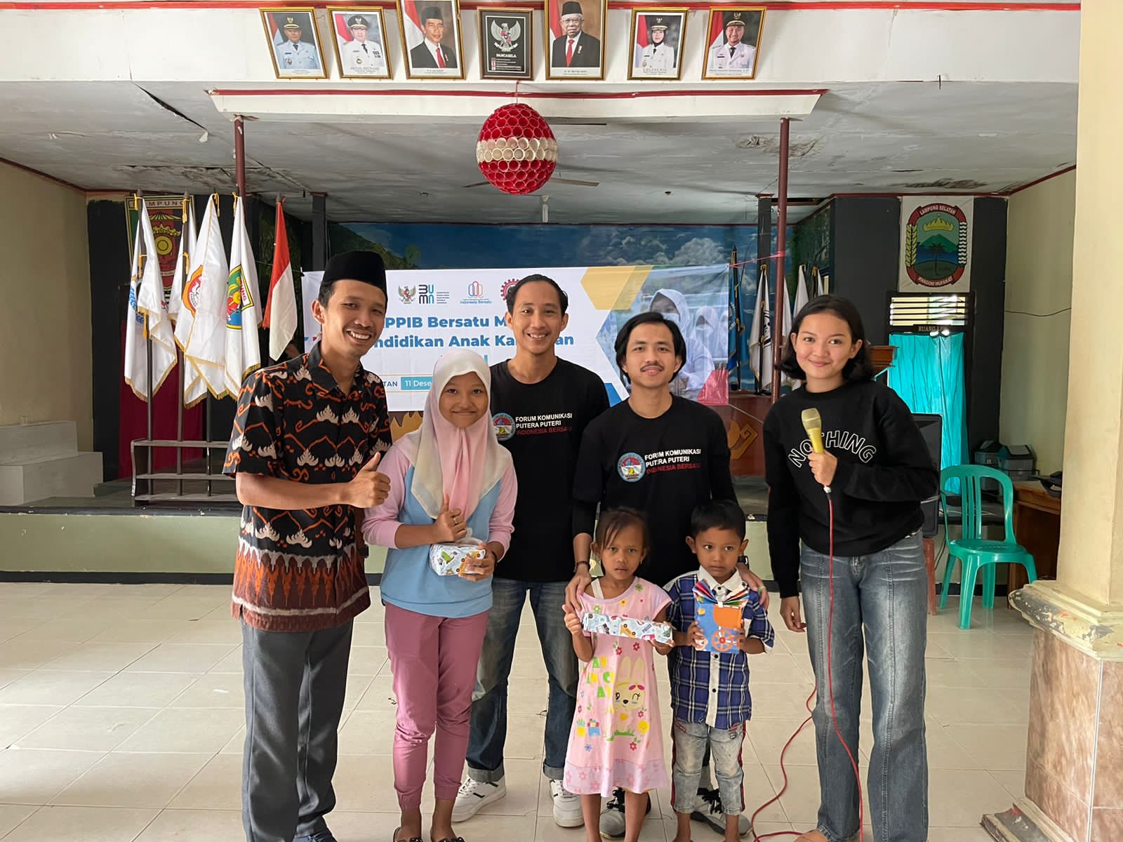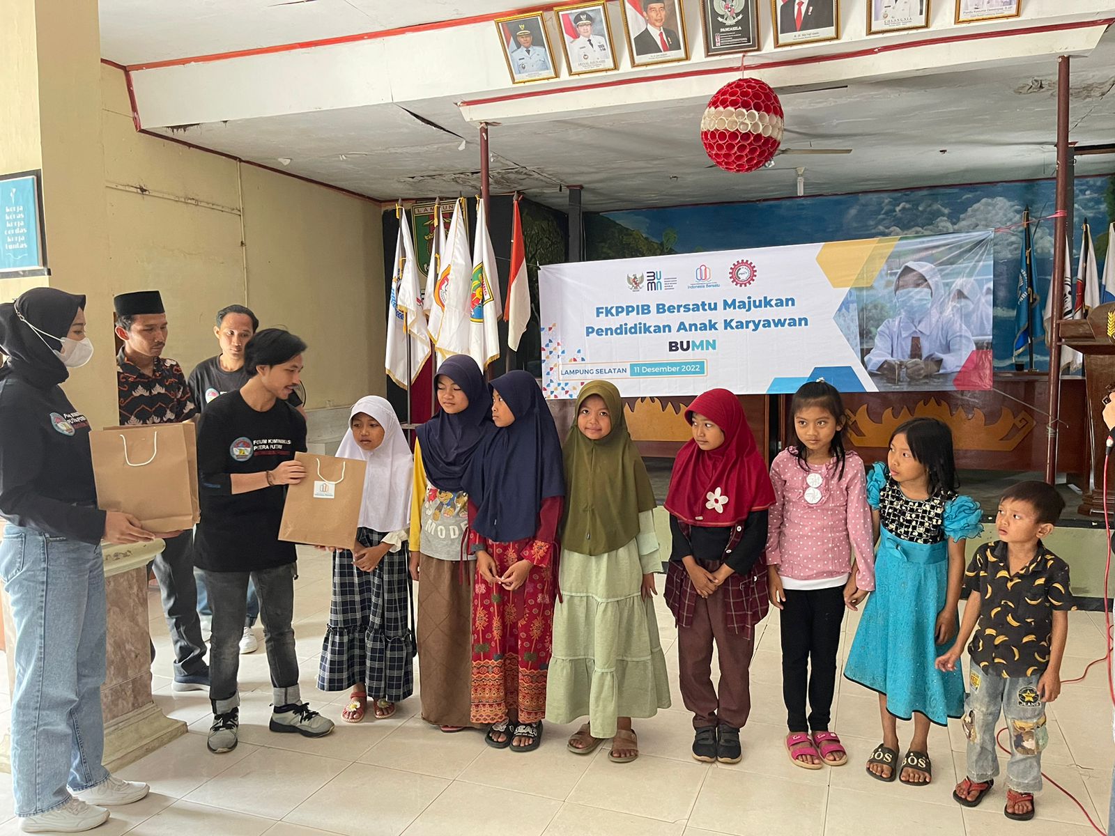 LAMPUNG SELATAN—Sebanyak 50 anak dari kalangan kurang mampu di Desa Waygalih dan Sabahbalau, Tanjungbintang, Lampung Selatan mendapat paket alat tulis sekolah dari FKPPIB, Ahad (11/12/22).