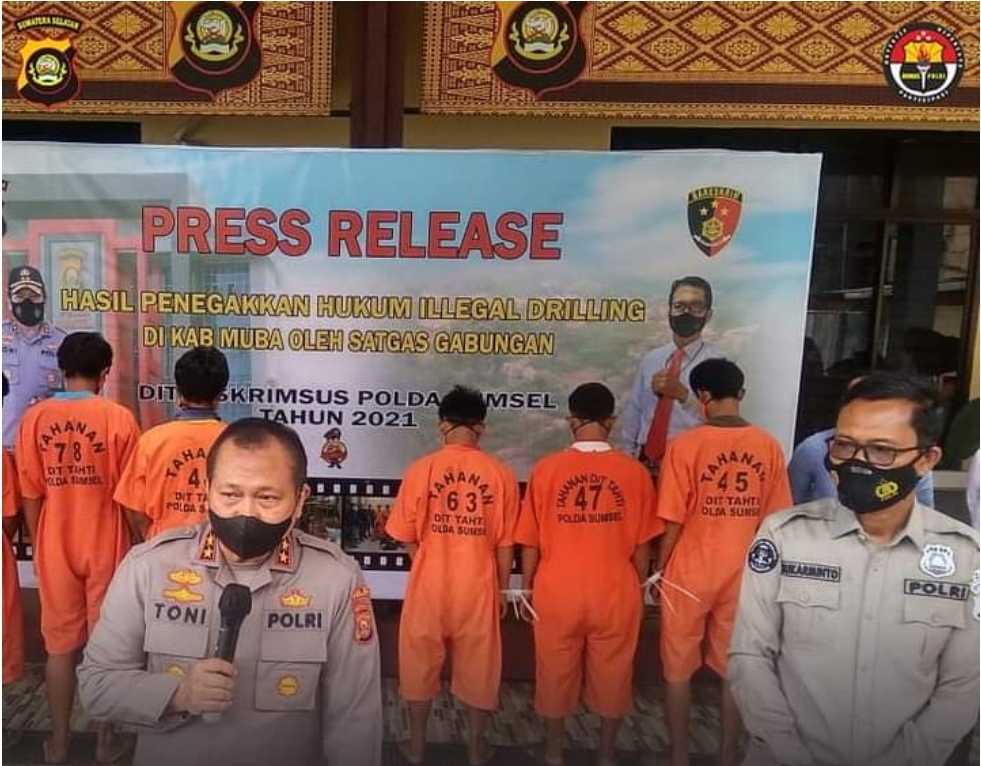 Kapolda Sumsel Irjen Pol Drs Toni Harmanto mengatakan Satgas gabungan melakukan penegakan hukum terhadap pelaku penambangan minyak ilegal atau ilegal drilling di wilayah Musi Banyuasin. Satgas gabungan menemukan kurang lebih 1000 titik sumur yang ditambang masyarakat. Satgas gabungan tidak akan berhenti sampai disini karena adanya potensi lain terkait pelaku-pelaku penambang lainnya.