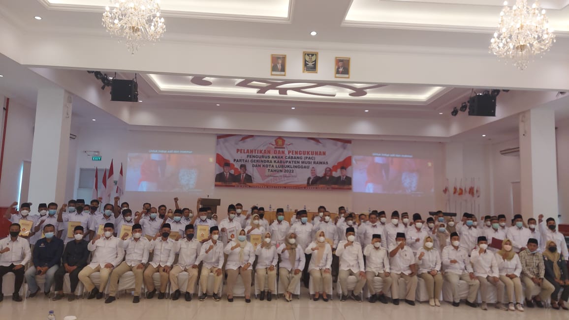 Pelantikan dipimpin langsung oleh Ketua DPD Gerindra Sumsel, didampingi oleh ketua DPC Musi Rawas dan Lubuklinggau, dengan membacakan SK Pelantikan pengurus PAC Kabupaten Musi Rawas dan Kota Lubuklinggau.