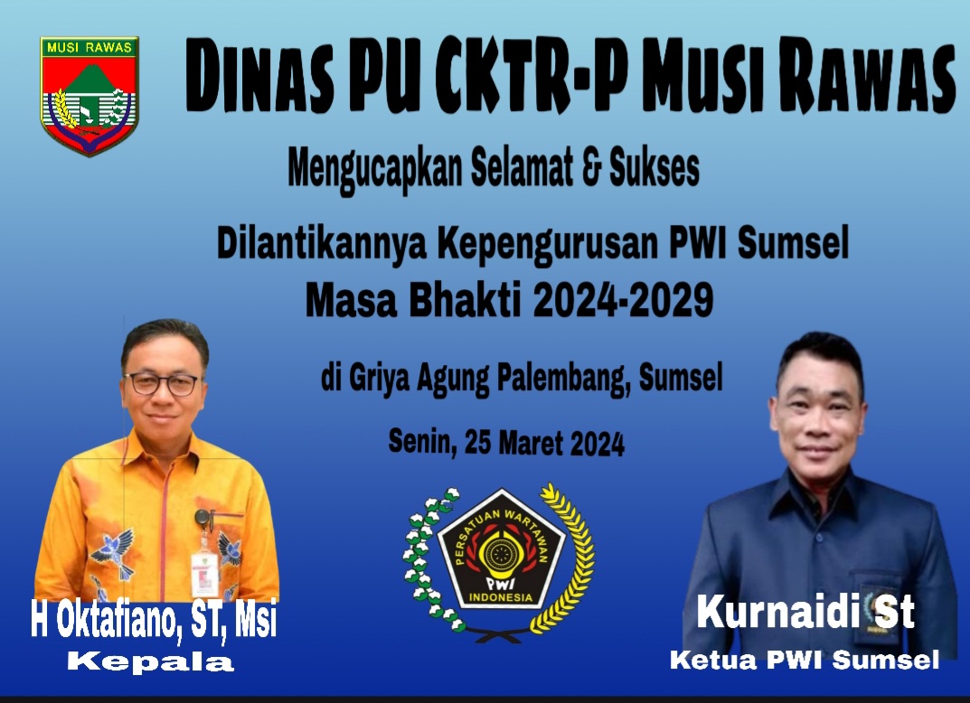 Kadis PU CK TR-P Mura Mengucapkan Selamat Atas Pelantikan Kepengurusan PWI Sumseladmin202124 Maret 2024iklan