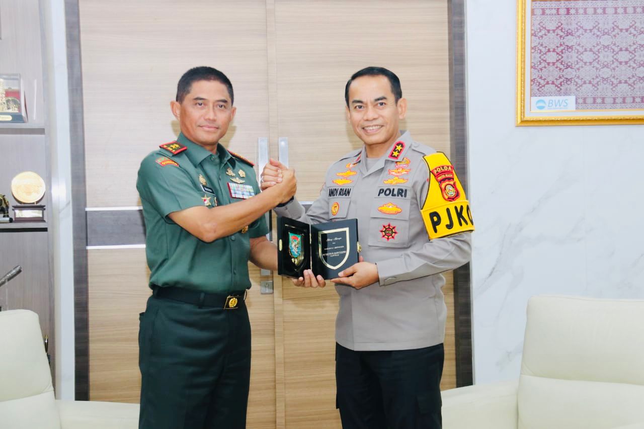 PALEMBANG –  Kapolda Sumsel Irjen Andi Rian R Djajadi Sik MH menyambangi  Makodam II Sriwijaya di jalan Jenderal Sudirman Palembang.Senin (7/10/3024)