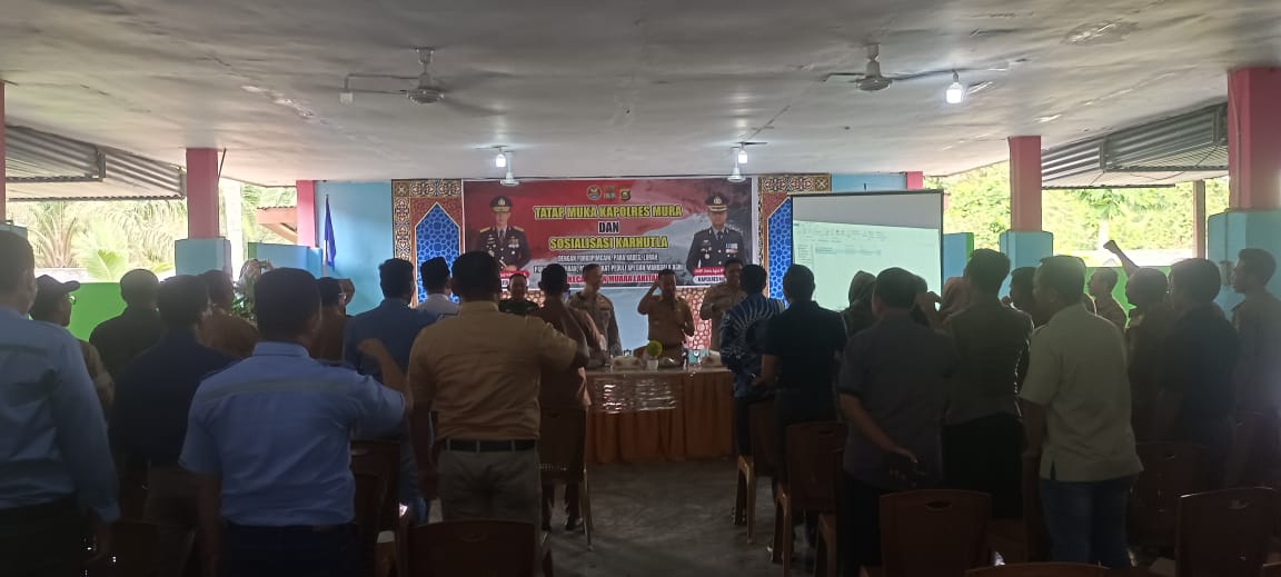 MUARA LAKITAN-Menghadapi musim kemarau, Polsek Muara Lakitan bersama Forum Komunikasi Pimpinan Kecamatan (Forkopimcam) Muara Lakitan melaksanakan tatap muka dan sosialisasi Kebakaran Hutan dan Lahan (Karhutla) pada masyarakat. Tujuannya agar tidak melakukan pembukaan hutan atau lahan dengan cara dibakar.