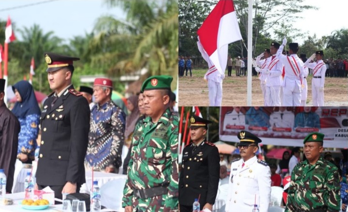TUNGKAL ILIR, – Kapolsek Tungkal Ilir, Kabupaten Banyuasin Iptu M. Fachrie Persada Putra, S.Tr.K M.Si, tampak turut hadir dalam Upacara pengibaran Bendera dalam rangka memperingati Hari Ulang Tahun (HUT) Kemerdekaan Republik Indonesia Ke 80 yang digelar di lapangan sepak bola Desa Teluk Tenggulang, Minggu (17/08/2025).