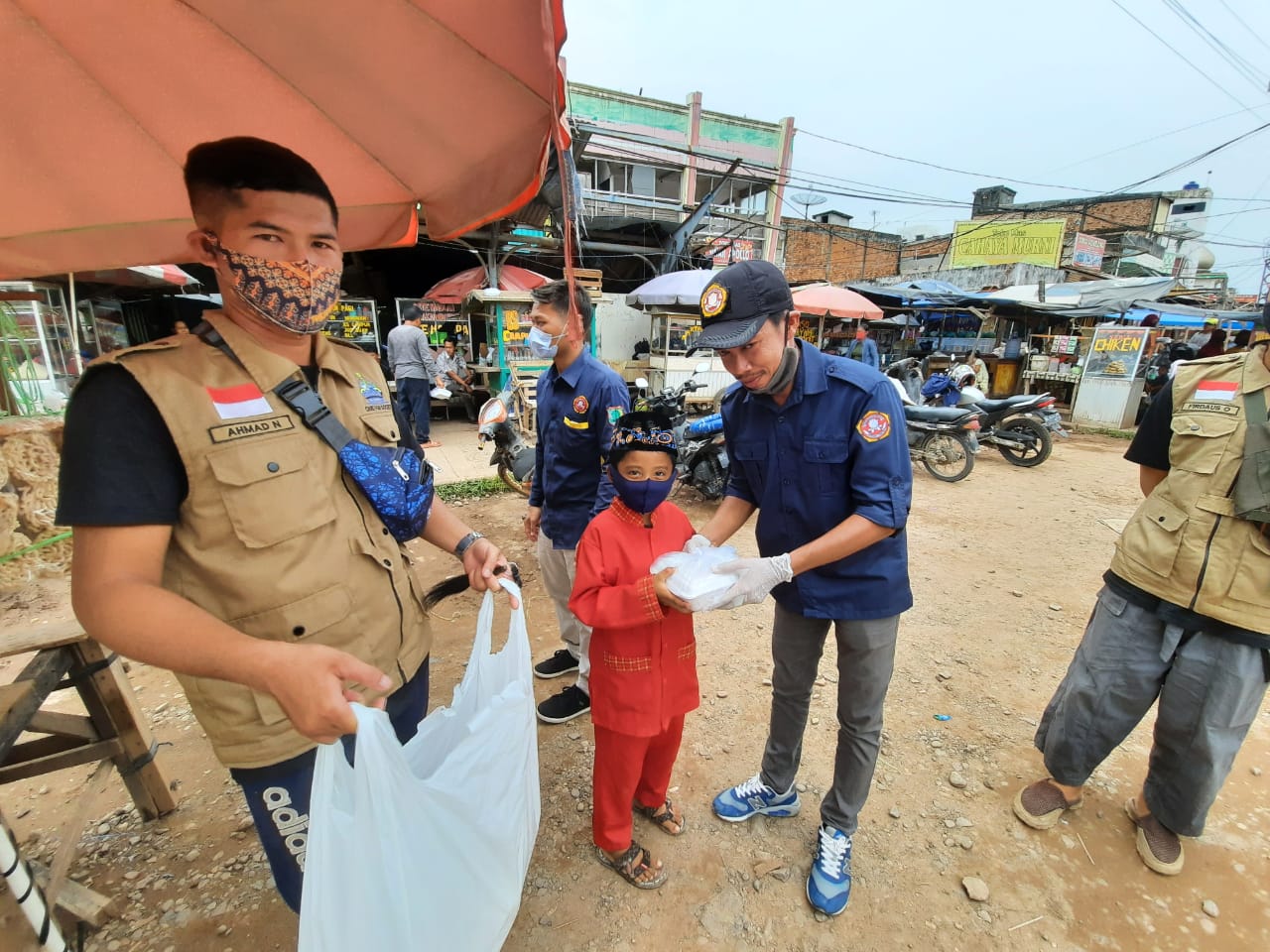 HAEDLINESRIWIJAYA.COM. SUNGAI LILIN- Karang Taruna Kecamatan Sungai Lilin, melakukan gerakan Jumat barokah, dengan membagikan nasi kotak pada kaum dhuafa, anak kurang Mampu, Tukang Becak dan buruh serta himbauan pakai masker tersebut diberikan usai salat Jumat di lokasi Pasar Sungai Lilin.(09/10/2020).