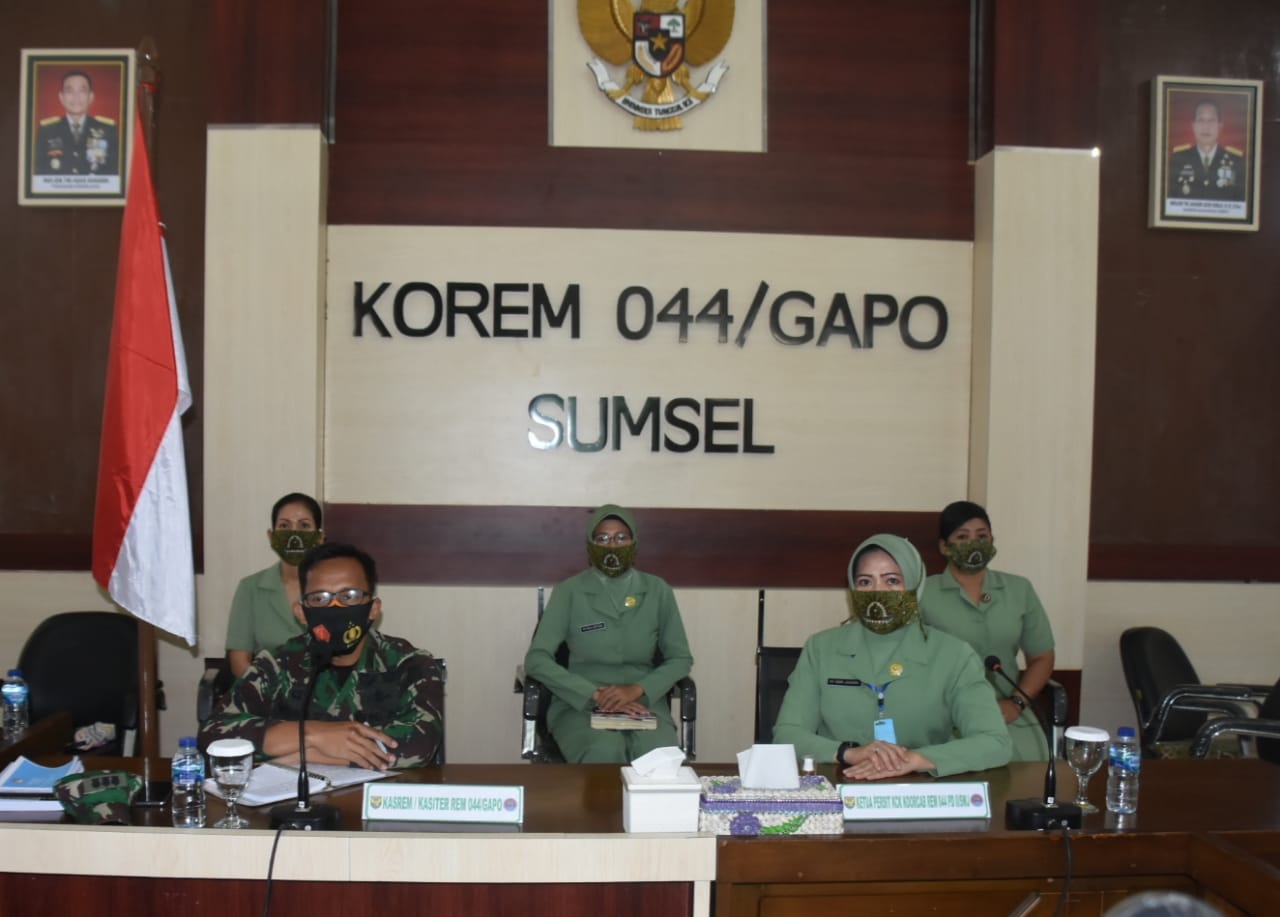 Penyelenggarakan kegiatan Komunikasi Sosial (Komsos) dengan keluarga besar TNI yang dilaksanakan di ruang vicon Makorem 044/Gapo Jalan Jendral Sudirmam Km 4.5 Palembang. bertema”, Keluarga Besar TNI (KBT) Mendukung Pemerintah Dalam Penanganan Covid – 19″ rabu (7/10/2020).