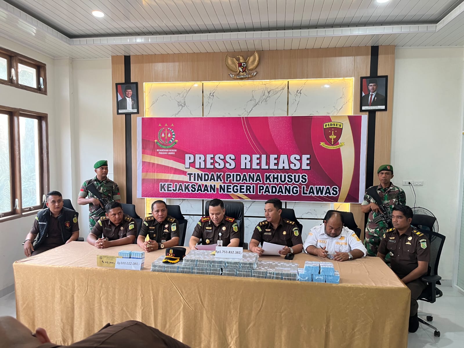 Dengan demikian, total uang yang berhasil diamankan penyidik dalam perkara ini mencapai Rp1.853.854.462. Seluruh barang bukti uang tersebut telah diperlihatkan secara terbuka di hadapan pihak-pihak terkait.