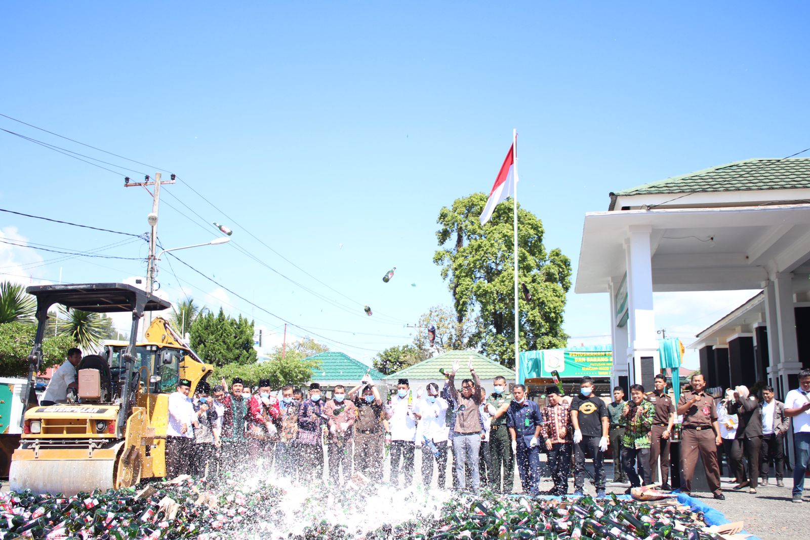 Barang Bukti berupa mikol dimusnahkan dengan cara dilindas buldozer itu telah sesuai atas 3 Putusan Pengadilan dengan jumlah total keseluruhan sebanyak 10.024 botol dan 34 liter minuman keras beralkohol.