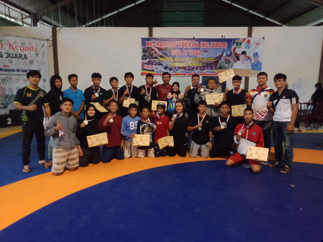 PASAMAN BARAT, Kejuaraan Daerah ( Kejurda) Gulat yang diselenggarakan di GOR H. Agus Salim kota Padang pada 20/8/2022, Atlet Kabupaten Pasaman Barat (Pasbar) menyabet 13 mendali emas mengungguli Atlet tuan rumah Padang yang meraih mendali emas 9