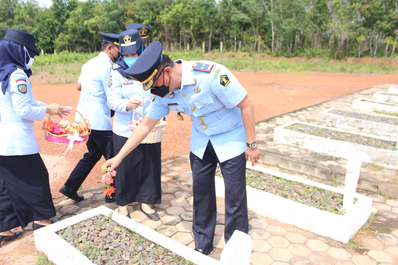 BANYUASIN, Lembaga Pemasyarakatan Kelas IIA Banyuasin melaksanakan prosesi upacara dan tabur bunga di Taman Makam Pahlawan (TMP) Pangkalan Balai Kabupaten Banyuasin, Selasa (26/10/2021).