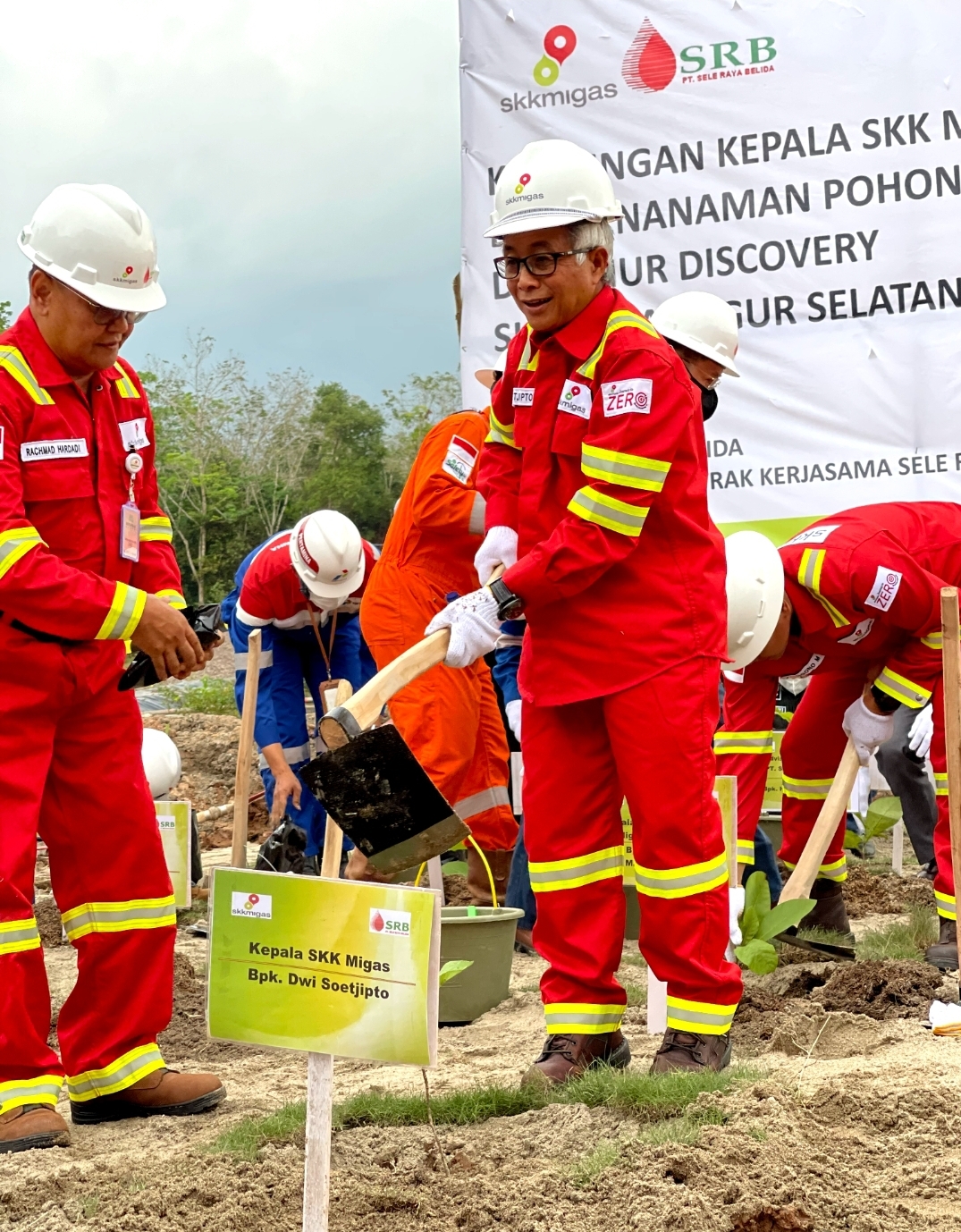 Kegiatan ditutup dengan Program Penghijauan Hulu Migas melalui penanaman pohon bersama SKK Migas – KKKS Sele Raya Belida di lokasi Sumur Discovery Sungai Anggur Selatan-1. “Ada sebanyak 15 pohon jati yang kita tanam, mudah-mudahan pohon ini nantinya akan tumbuh dengan baik dan dapat menjaga keasrian lingkungan di sekitar sumur sehingga dapat mendukung penurunan emisi karbon di masa mendatang.” Tutup Dwi.