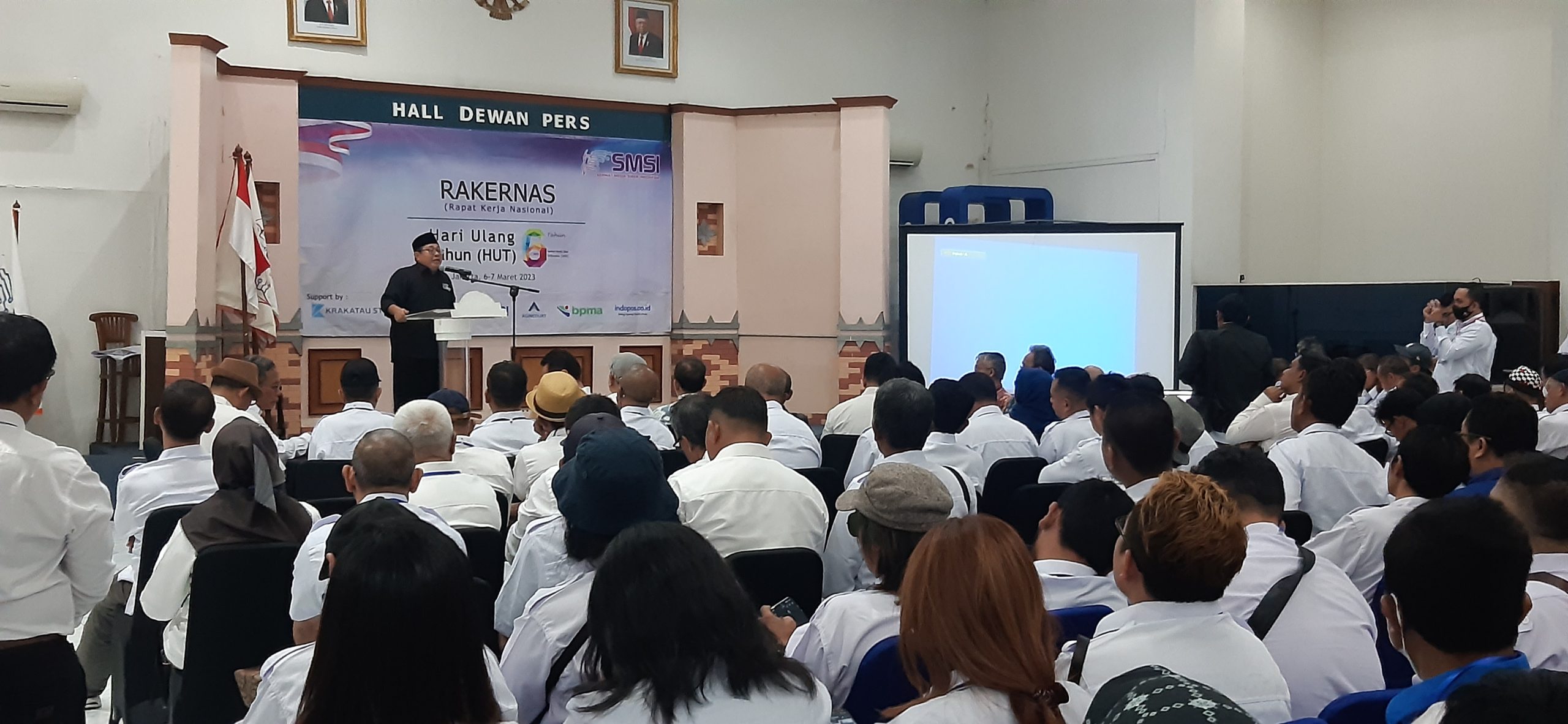 JAKARTA ,- Seluruh Ketua serta pengurus SMSI se-Indonesia menghadiri Rapat Kerja Nasional (Rakernas) dan peringatan HUT Serikat Media Siber Indonesia (SMSI) ke-6 di Gedung Dewan Pers Jakarta, Senin (6/3/2023). Acara tersebut dibuka langsung Ketua Dewan Pers Ninik Rahayu.