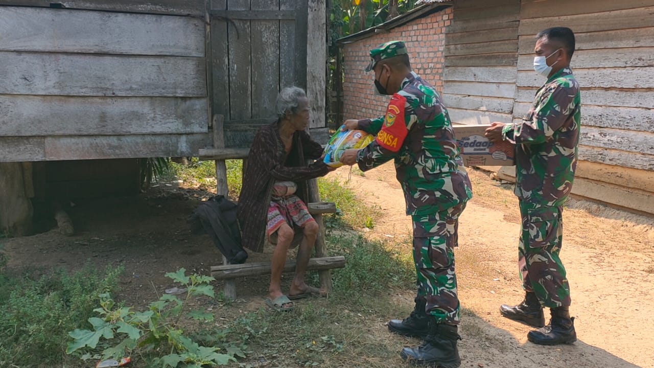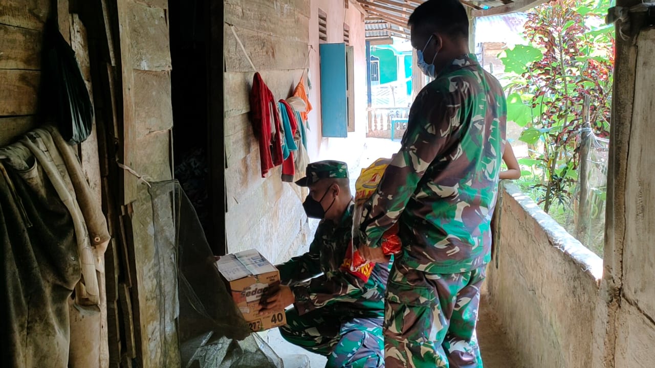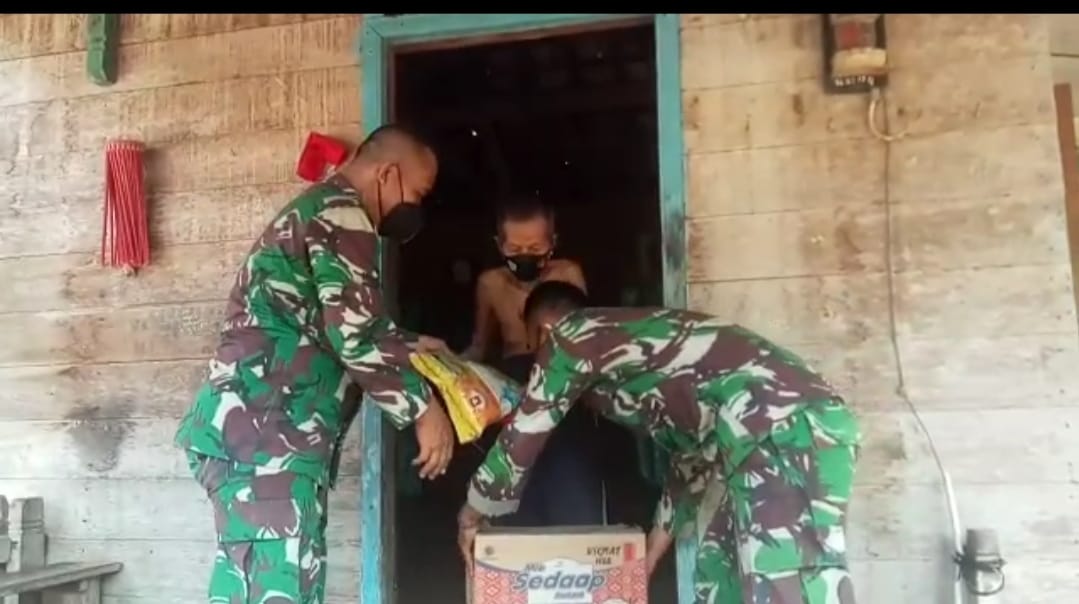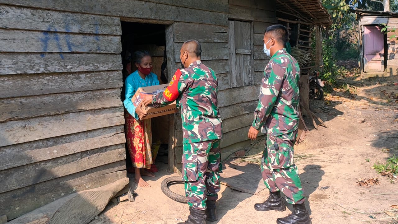 Musi Banyuasin,- Dandim 0401/Muba Letkol Arh Faris Kurniawan melalui Danramil 401/01 s.lilin Kapten Arm.Indra Jaya, kembali salurkan bantuan Sembako kepada masyarakat kurang mampu yang terdampak Covid-19 pada saat penerapan PPKM di perketat, Jumat (30/7/21).