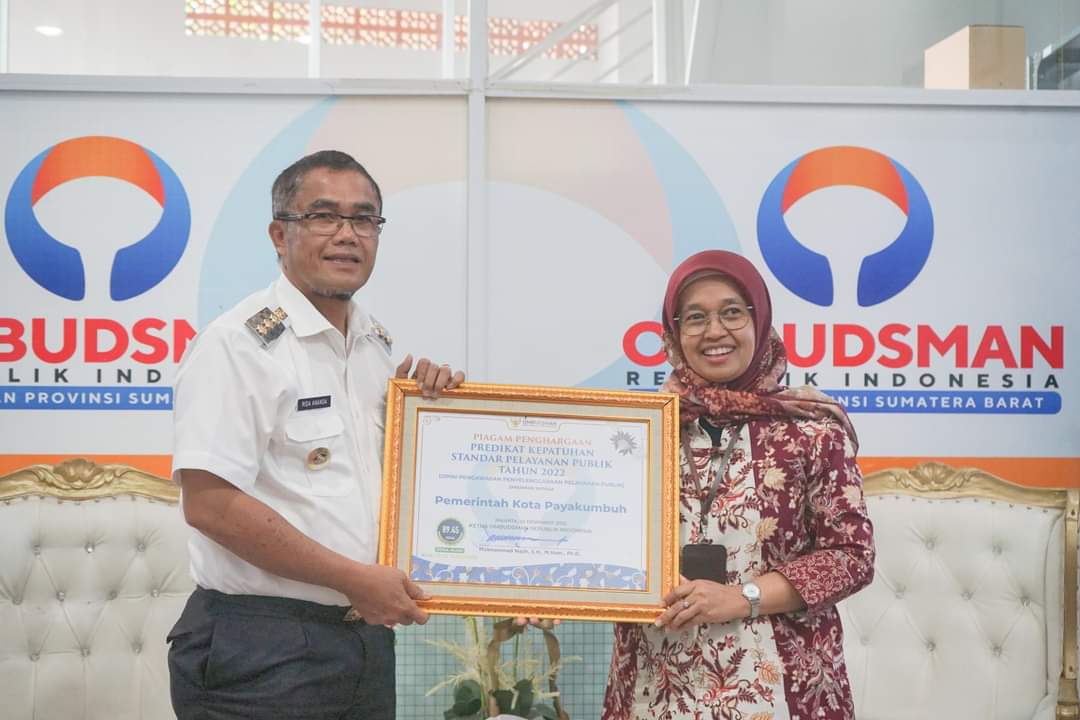 Payakumbuh — Penjabat Wali Kota Rida Ananda kembali menunjukkan hasil yang luar biasa dalam kinerjanya. Pasalnya, tahun 2023 ini diawali oleh sebuah prestasi manis dengan meraih penghargaan Penilaian Kepatuhan Penyelenggaraan Pelayanan Publik Tahun 2022 yang serahkan oleh Kepala Ombudsman RI Perwakilan Sumatera Barat Yefri Heriani di Padang, Rabu (8/2).