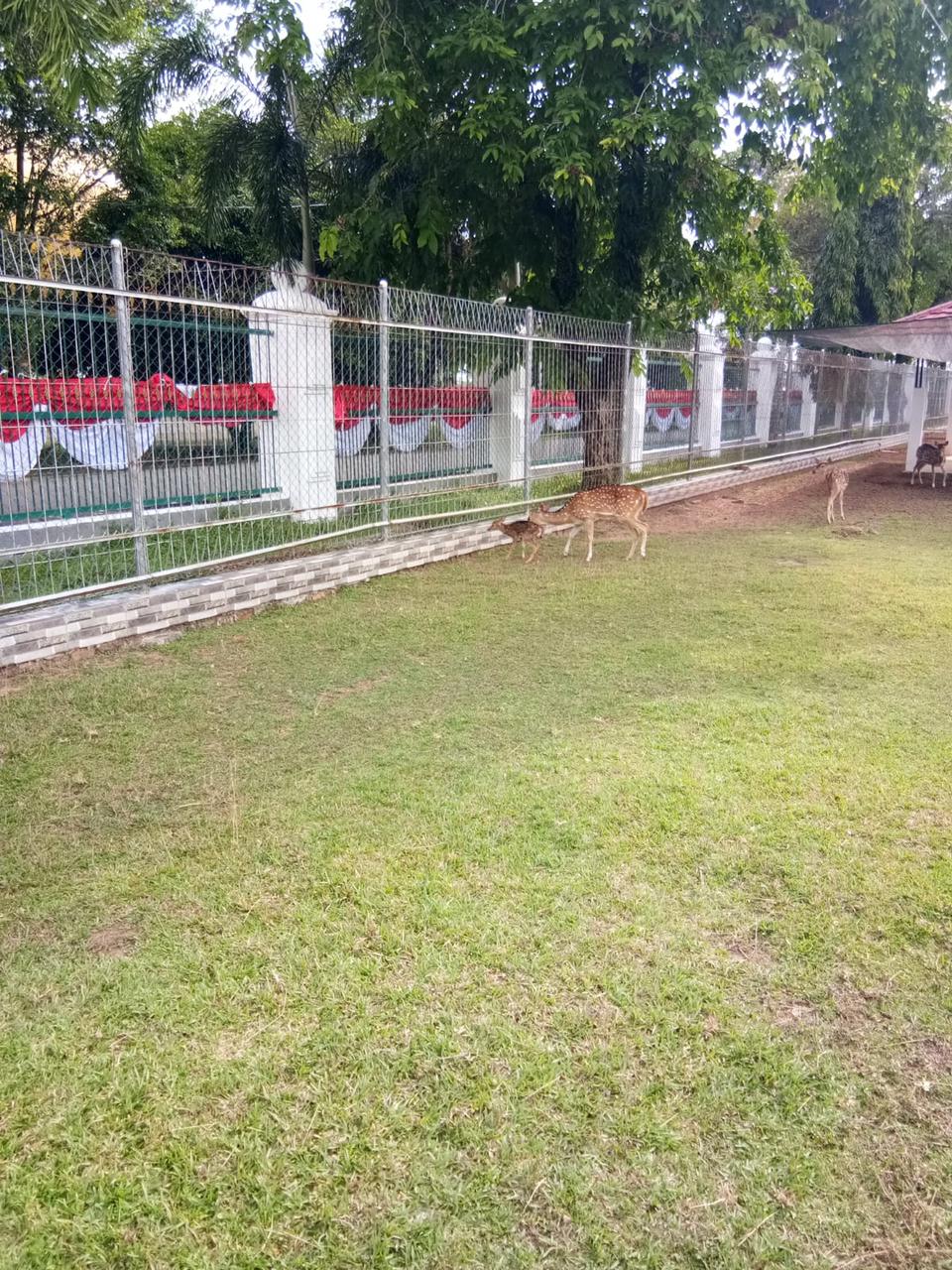 “Sebagian dari rusa-rusa ini kami pindah ke halaman depan agar supaya jangan berkelahi sesama jantan, selain itu agar masyarakat Sekayu yang lewat di depan dan samping Rumah Dinas Bupati, atau Griya Bumi Serasan Sekate, baik sedang berolah raga jogging, atau jalan kaki, bahkan yang sedang berkunjung di Taman Depan Rumah Dinas Bupati juga dapat melihat keberadaan rusa-rusa cantik itu,” tandasnya.( Heri)
