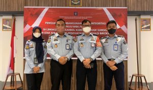 Kepala Lapas Kelas IIA Banyuasin Ronaldo Devinci Talesa hadir didampingi oleh Ketua Tim Pembangunan Zona Integritas Yudhi Khairudin dan dua perwakilan operator M Fadhil Maulidin dan Yunita Dwi Safira.