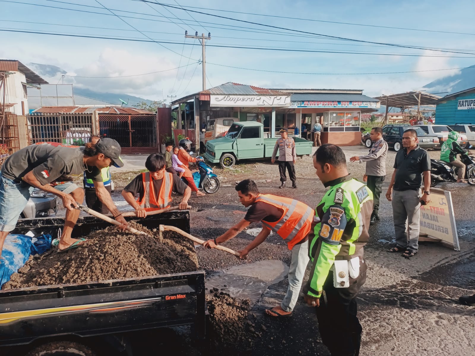 “Kita lakukan penambalan sementara menggunakan material semen dan kerikil, ucap Saherman”