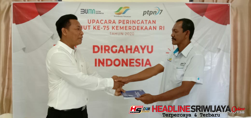 HEADLINESRIWIKAYA.COM, Banyuasin.- Menyemarakan Peringatan Kemerdekaan HUT RI ke-75 di PTPN VII init Bentayan, sama.dengan unit PTPN VII lainnya Momentum Peringatan HUT RI ke-75 ini juga dilaksanakan serentak di seluruh Distrik/Unit wilayah kerja PTPN VII (Persero). upacara secara Virtual di lingkungan Unit Holding Perkebunan Nusantara, yang ikuti oleh Direksi, SEVP, dan Karyawan/ti PTPN I-PTPN XIV serta KPBN melalui Flatform Zoom Meeting dan Streaming Youtube @holdingperkebunan.