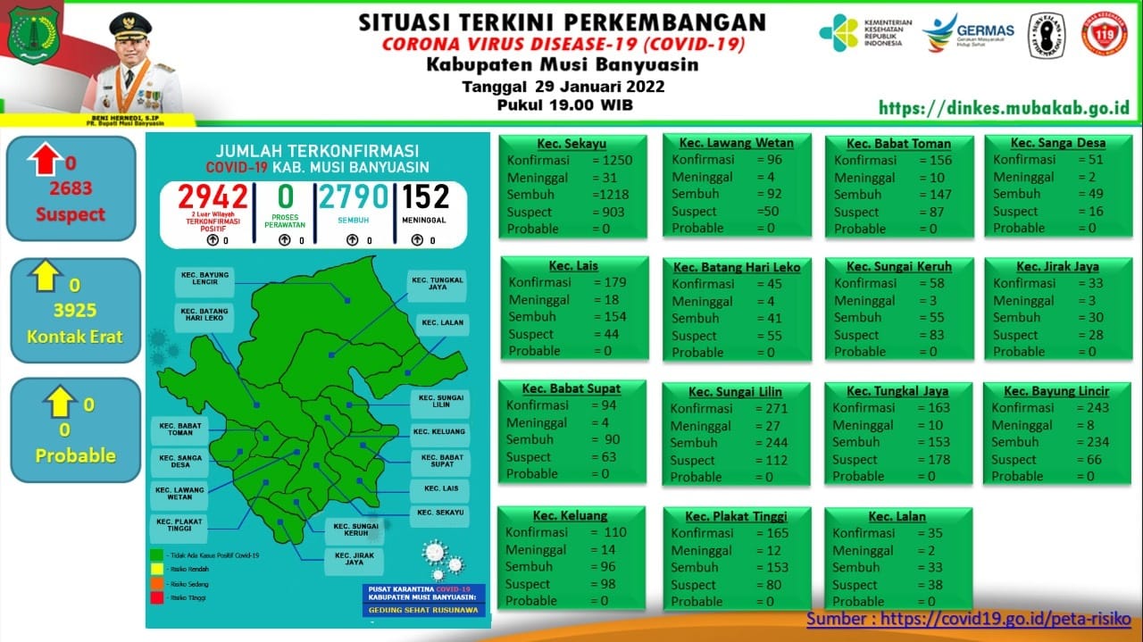 “Nihil penambahan kasus per 29 Januari 2022,” ungkap Jubir Gugus Tugas Penanganan COVID-19 Muba, Herryandi Sinulingga AP.