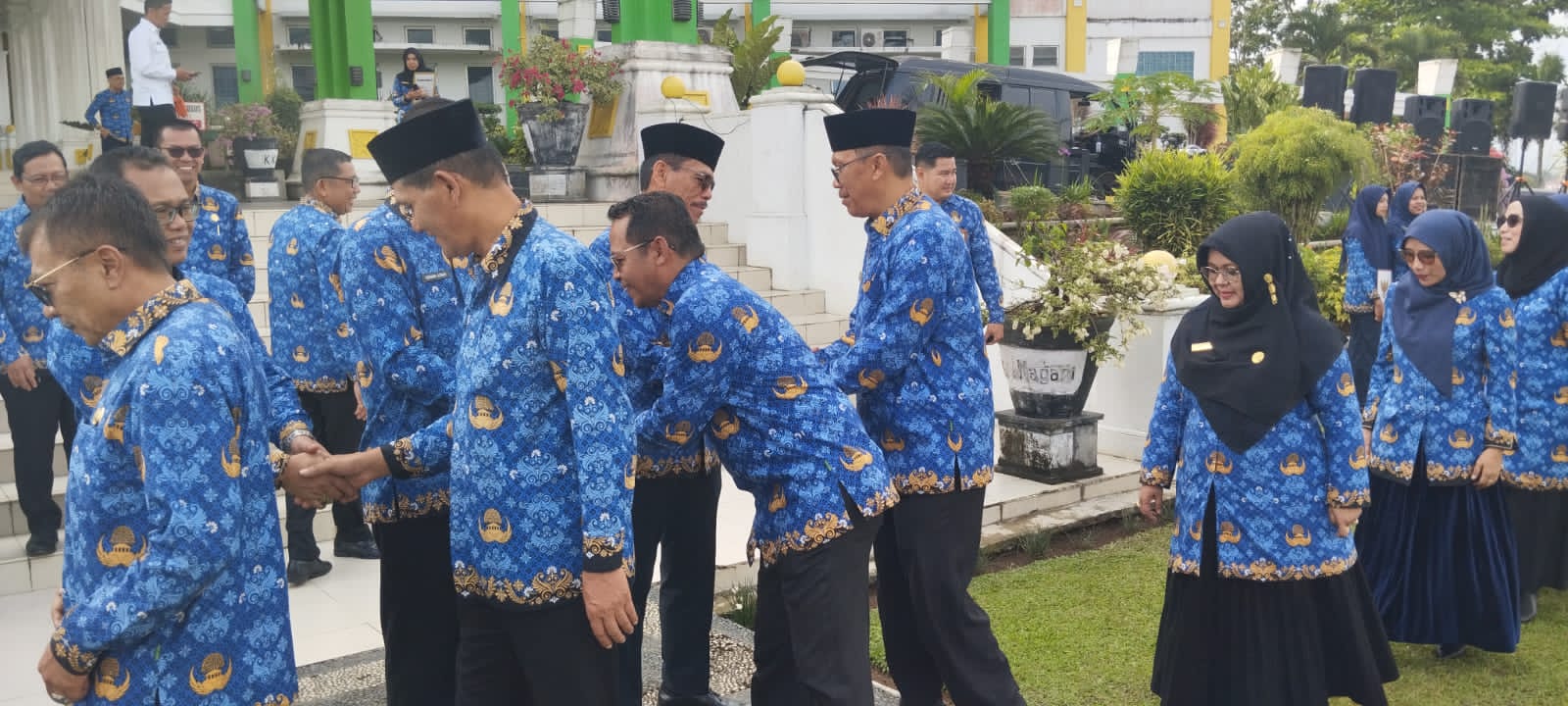 Usai pelaksanaan apel, segenap ASN dengan tertib langsung membuat antrian untuk bersalaman dengan pimpinan daerah serta para kepala OPD sembari mengulurkan tangan untuk bersalam-salaman permohonan maaf lahir dan batin dalam suasana hari raya. (*)
