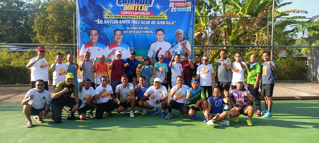 SEKAYU,– Persatuan Tenis Lapangan Indonesia (PELTI) Kabupaten Musi Banyuasin dan PELTI Kota Prabumulih menggelar Friendly Match Tenis Lapangan di Lapangan Tenis PELTI Kota Sekayu, Sabtu (19/7/2025).