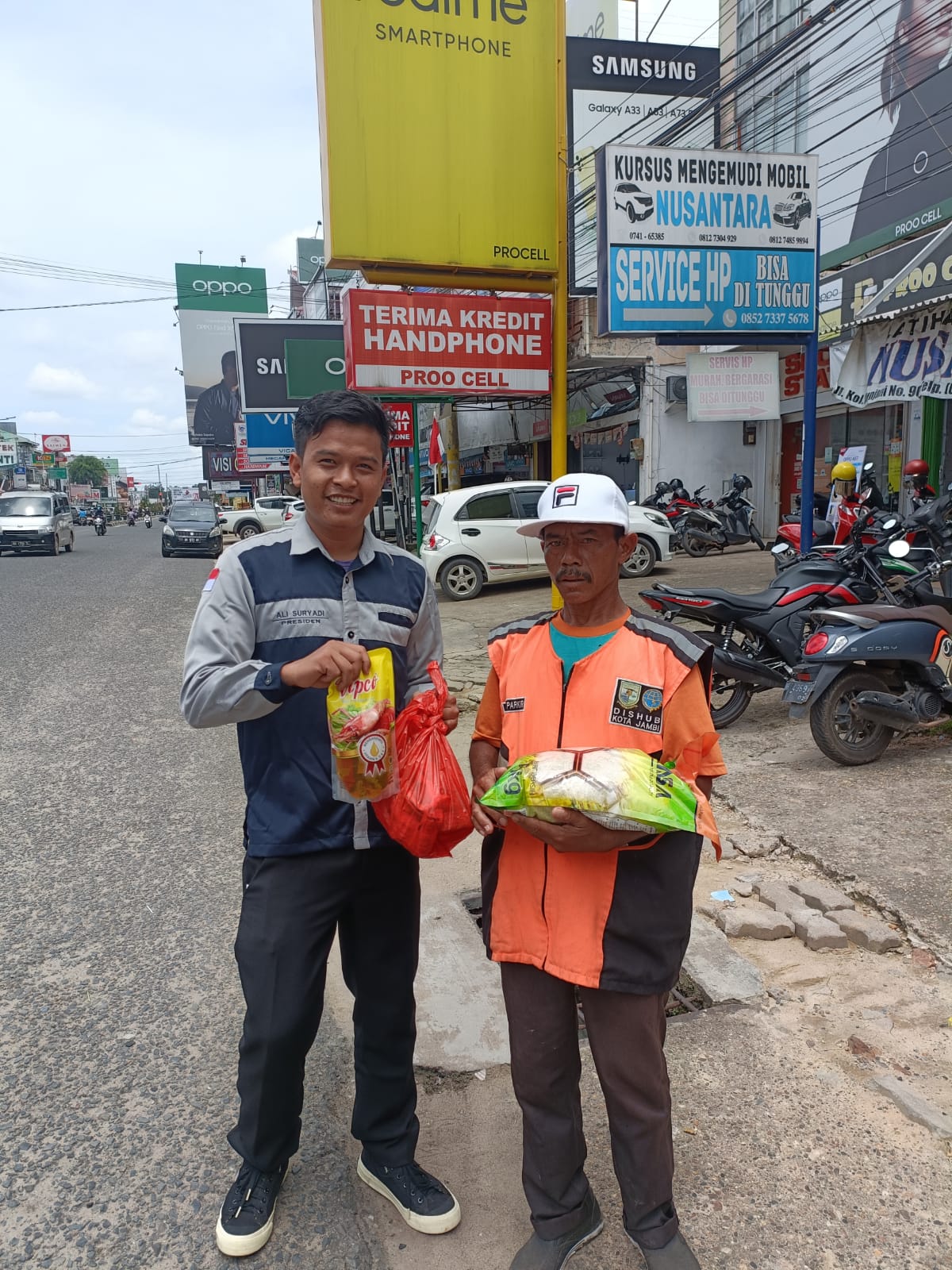 Kemudian sembako tersebut kami bagi langsung ke masyarakat jambi dan mahasiswa yang tidak mampu yang membutuh sembako
