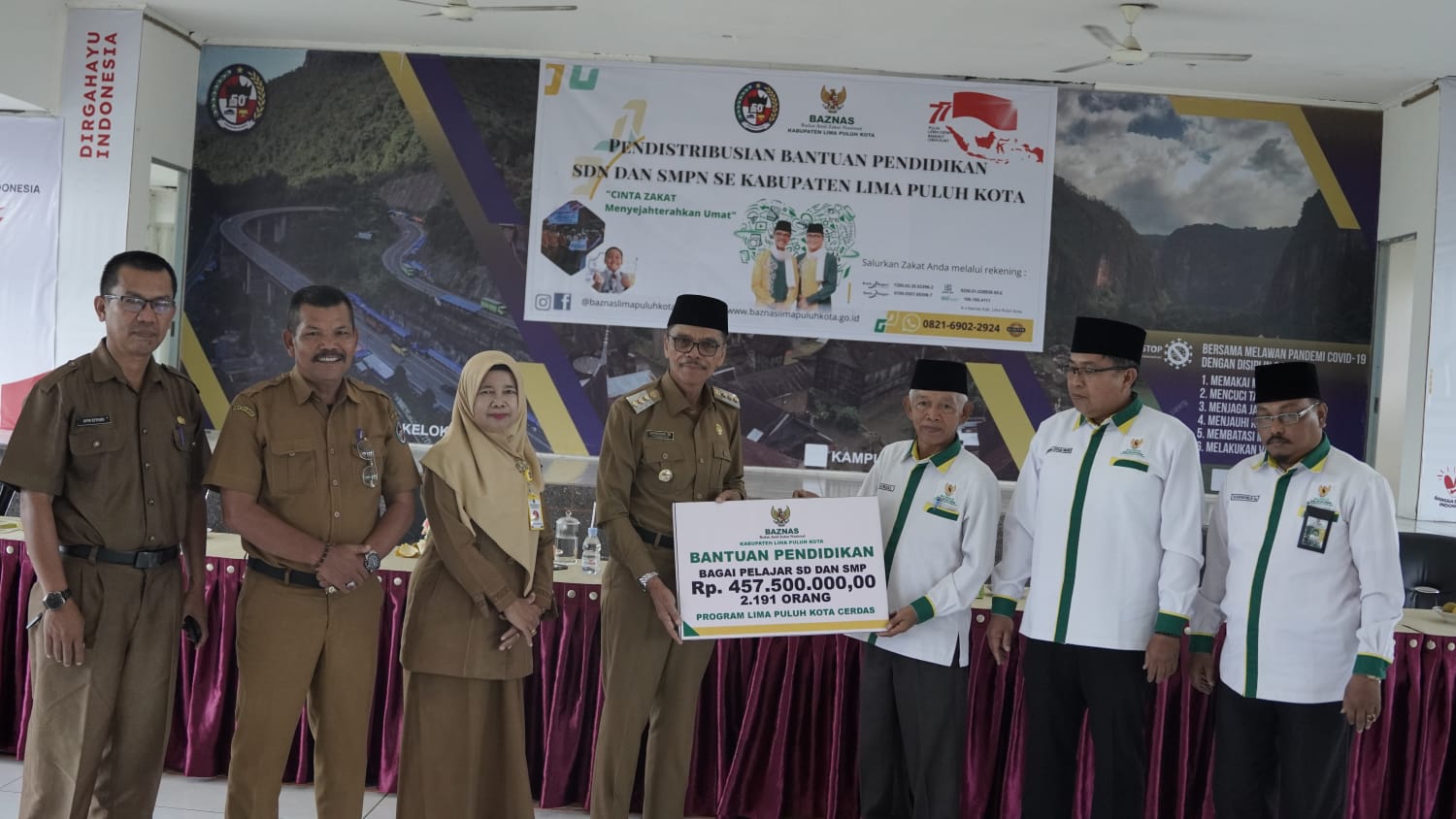 Begitupun dengan dunia pendidikan khususnya pelajar di Limapuluh Kota, kebahagiaan mereka dalam menyambut hari kemerdekaan tersebut semakin lengkap takkala Pemerintah Kabupaten Limapuluh Kota bersama Badan Amil Zakat Nasional (Baznas) salurkan 2191 bantuan pendidikan bagi pelajar SD maupun SMP di Kabupaten Limapuluh Kota.