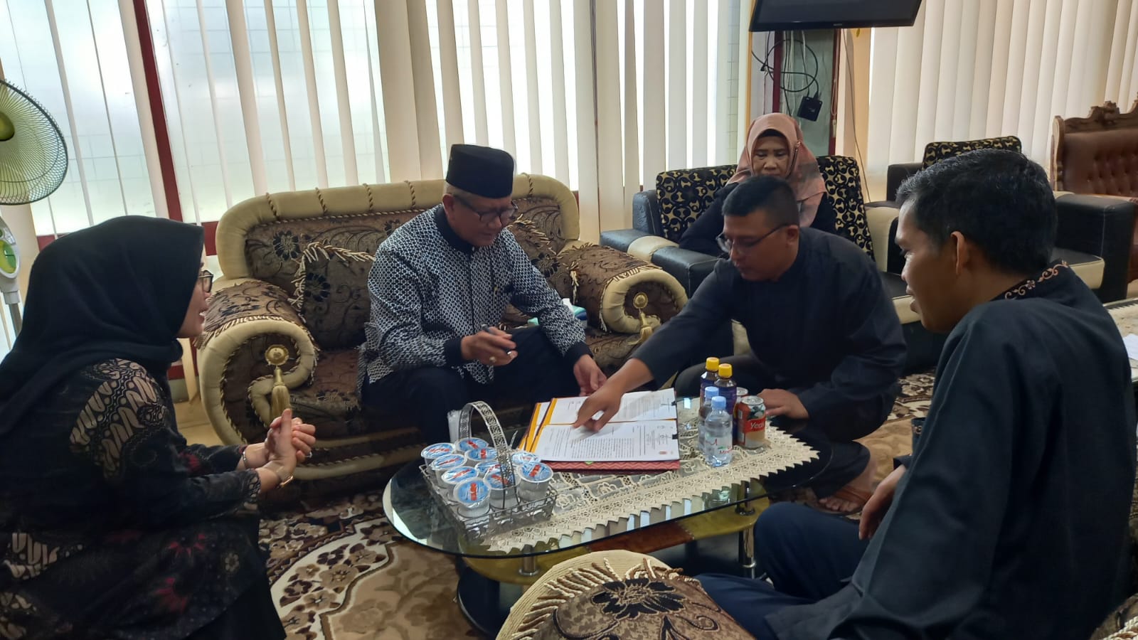 Bukittinggi –Ketua Forum Komunikasi Umat Beragama (FKUB) Kota Bukittinggi, H. Persalide didampingi Bendahara, Adek Harnis melakukan penandatanganan Naskah Perjanjian Hibah Daerah (NPHD) tahun 2023 bersama Kepala Badan Kesatuan Bangsa dan Politik (Bakesbangpol) Kota Bukittinggi, Elqadri di ruang kerja Kepala Badan setempat Kamis ( 11/05/2023).