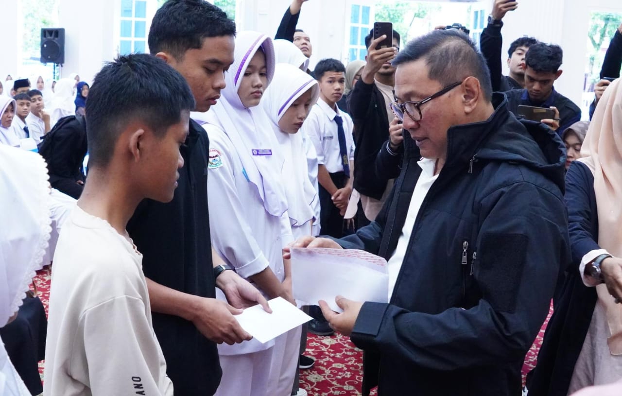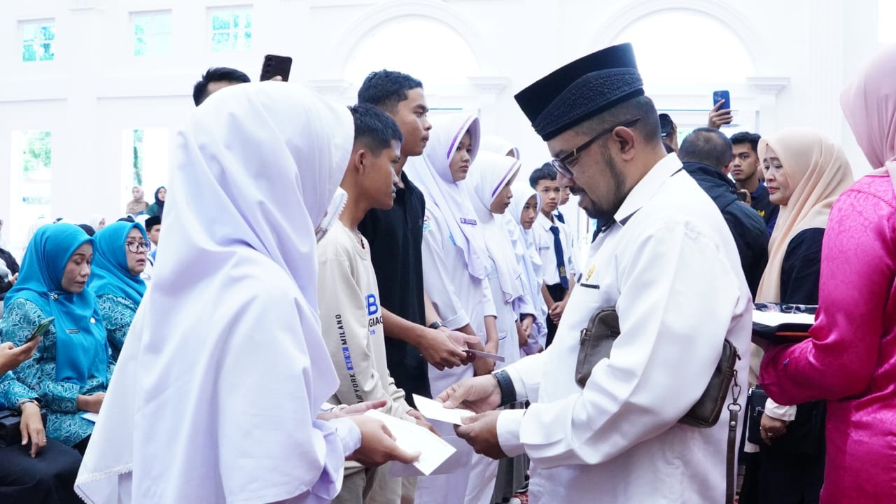 Bukittinggi — Wali Kota Bukittinggi, serahkan secara simbolis bantuan dari TP PKK, GOW, Baznas dan YPAM (Yayasan Perempuan Amanah Minang) serta sejumlah pengusaha, kepada pelajar Kota Bukittinggi yang terdampak bencana Hidrometeorologi. Santuan diserahkan di Balairung Rumah Dinas Wali Kota, Selasa, 16 Desember 2025.