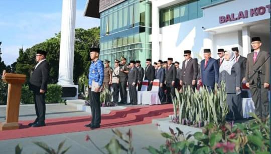 Pemerintah Kota Bukittinggi gelar upacara peringatan hari otonomi daerah ke 30 Tahun 2026. Upacara dipimpin Wali Kota Bukittinggi, di Halaman Balaikota, Senin, 27 April 2026.