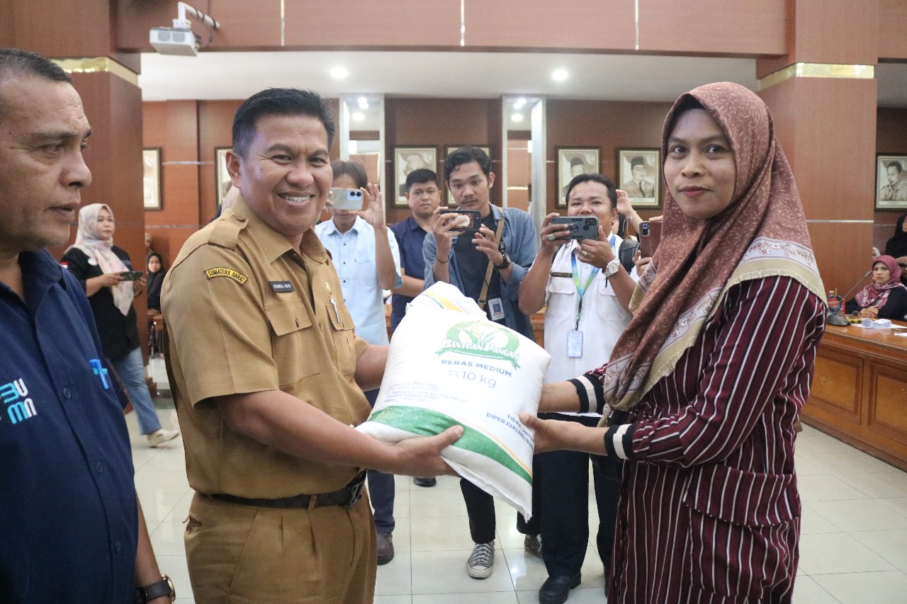 Sekda Bukittinggi, Rismal Hadi, dalam sambutannya, menyampaikan, pemerintah baik pusat maupun daerah, memiliki tanggung jawab besar dalam menjamin ketersediaan pangan masyarakat. Penyaluran bantuan pangan ini merupakan bagian dari komitmen tersebut.