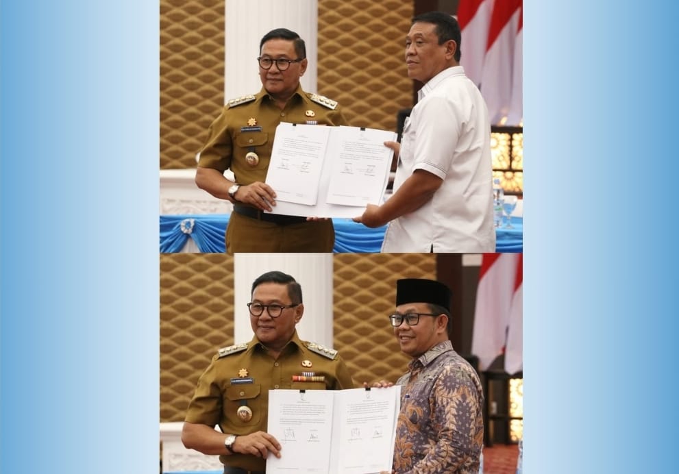 Wali Kota Bukittinggi Ramlan Nurmatias,Kepala Kantor Wilayah Ditjen Pemasyarakatan Sumatra Barat, Kunrat Kasmiri dan Rektor Universitas Muhammad Natsir di balairung rumah dinas wali kota, Senin (01/09/2025).
