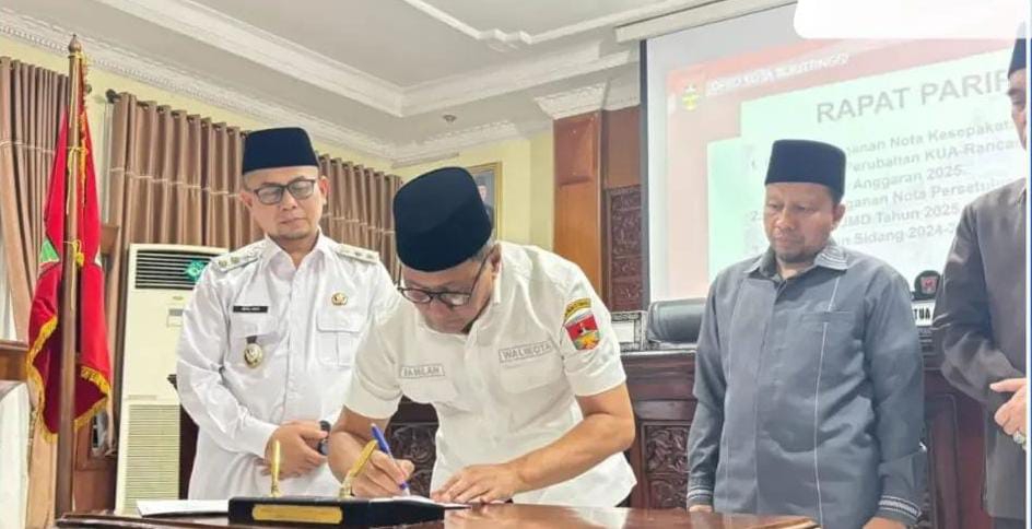 – Pemerintah Kota Bukittinggi bersama DPRD kota Bukittinggi tandatangani Nota Kesepakatan Bersama Rancangan Perubahan KUA-Rancangan Perubahan PPAS APBD Tahun Anggaran 2025, Raperda tentang RPJMD Tahun 2025-2029 dan Tutup Tahun Sidang 2024-2025 dan Buka Tahun Sidang 2025-2026. Kegiatan ini dilaksanakan dalam rapat paripurna di DPRD Kota Bukittinggi, Rabu, 13 Agustus 2025.