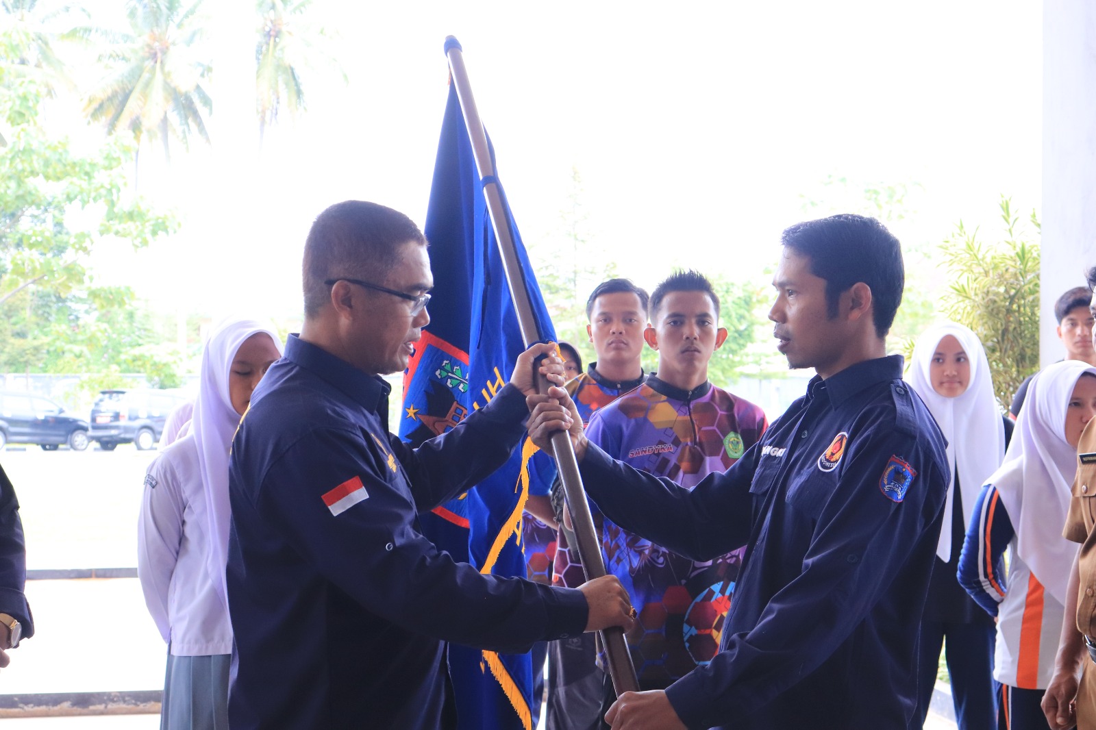 Acara pelepasan ditandai dengan penyerahan bendera pataka dari Pj. Wali Kota Rida Ananda atas nama Pemerintah Kota Payakumbuh kepada ketua Komite Olahraga Nasional Indonesia (KONI) Kota Payakumbuh Yengki Oktrio. (Humas)