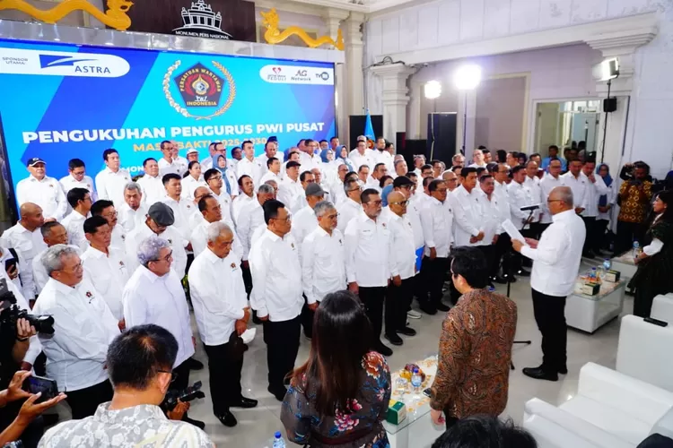 SOLO, – Pengurus Persatuan Wartawan Indonesia (PWI) Pusat periode 2025–2030 resmi dikukuhkan di Monumen Pers Nasional, Solo, Jawa Tengah, Sabtu (4/10/2025). Pengukuhan di tempat bersejarah yang menjadi saksi lahirnya pers Indonesia ini dihadiri Menteri Komunikasi dan Digital (Menkomdigi) Meutya Hafid, Wakil Menkomdigi Nezar Patria, Wakil Wali Kota Solo Astrid Widayani, serta sejumlah tamu dan undangan lainnya.