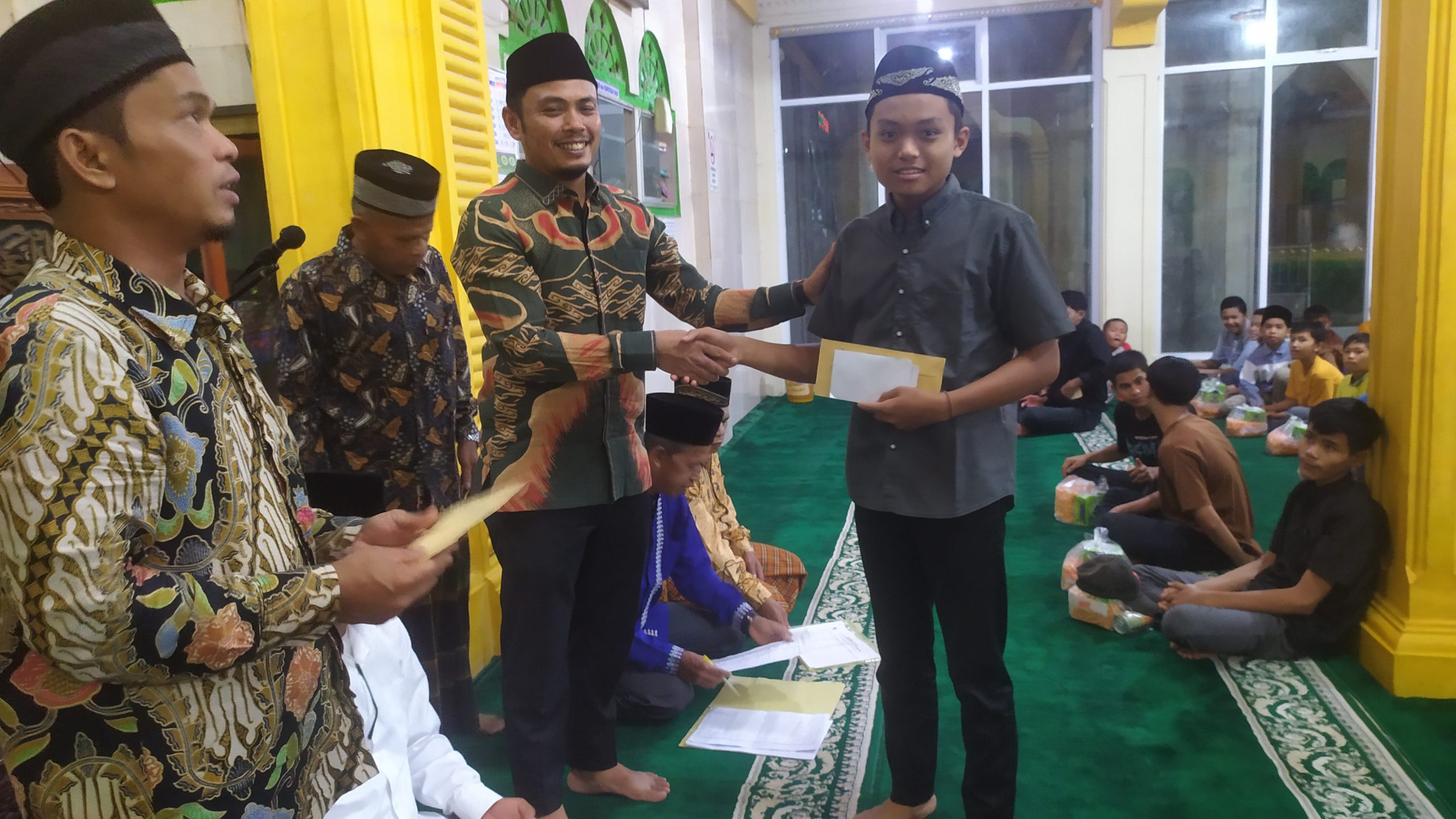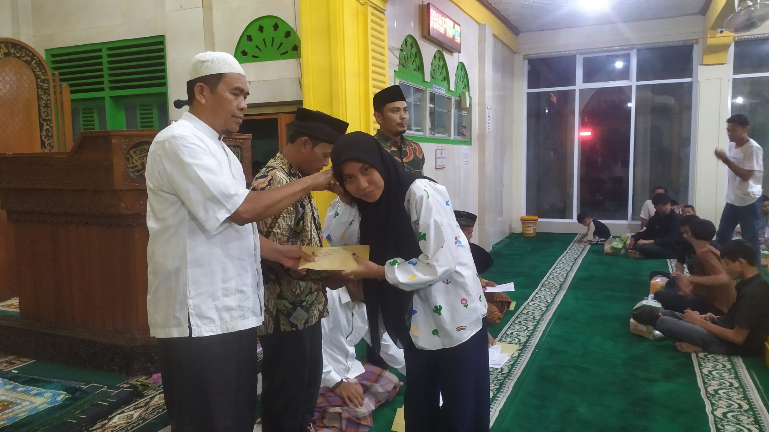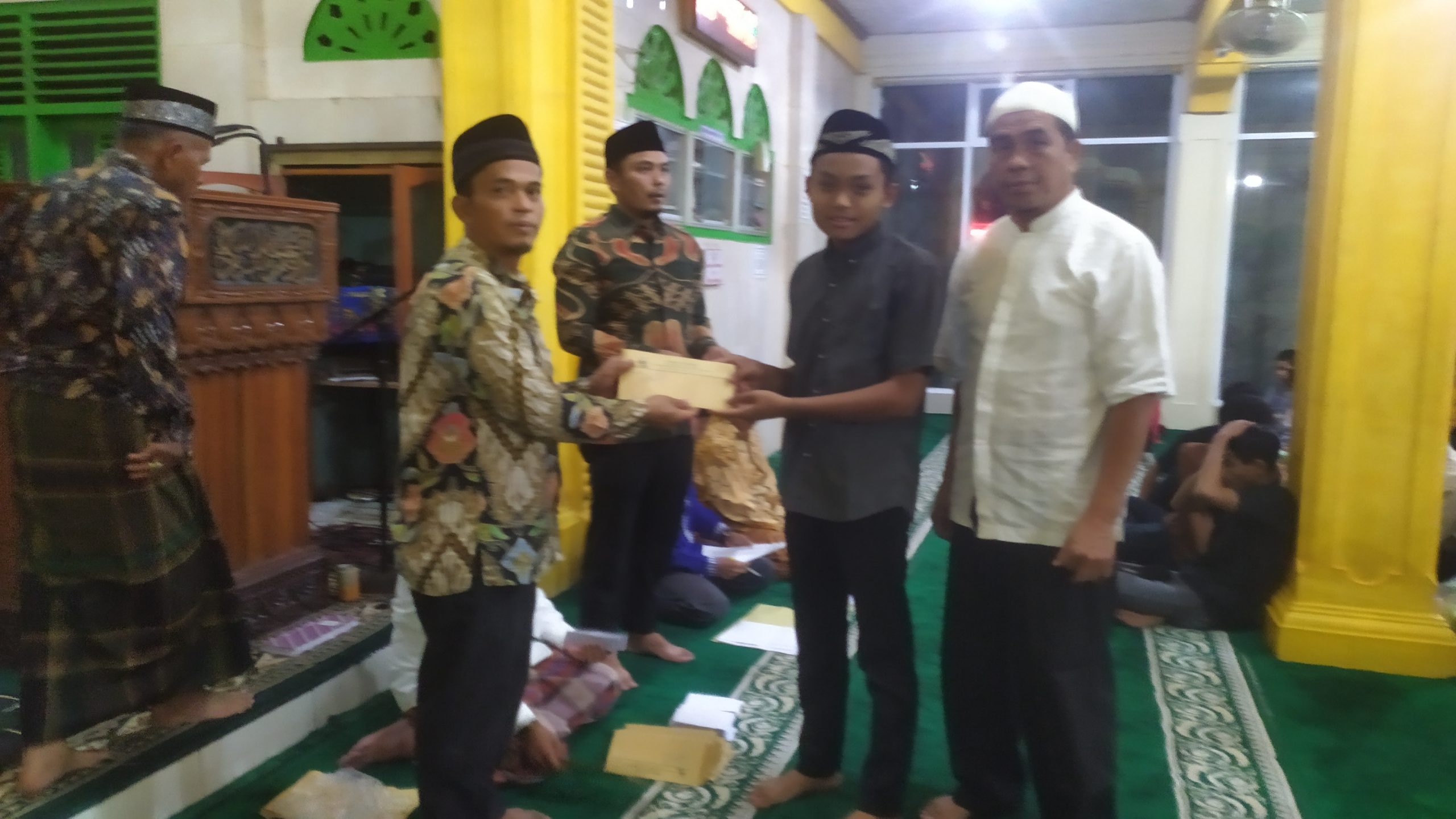 “Kreteria penerima bantuan bagi anak mulai dari sekolah Taman Kanak Kanak sampai Tingkat SMP.” Jelas Bendahara Masjid H.Januardi disela sela penyerahan.