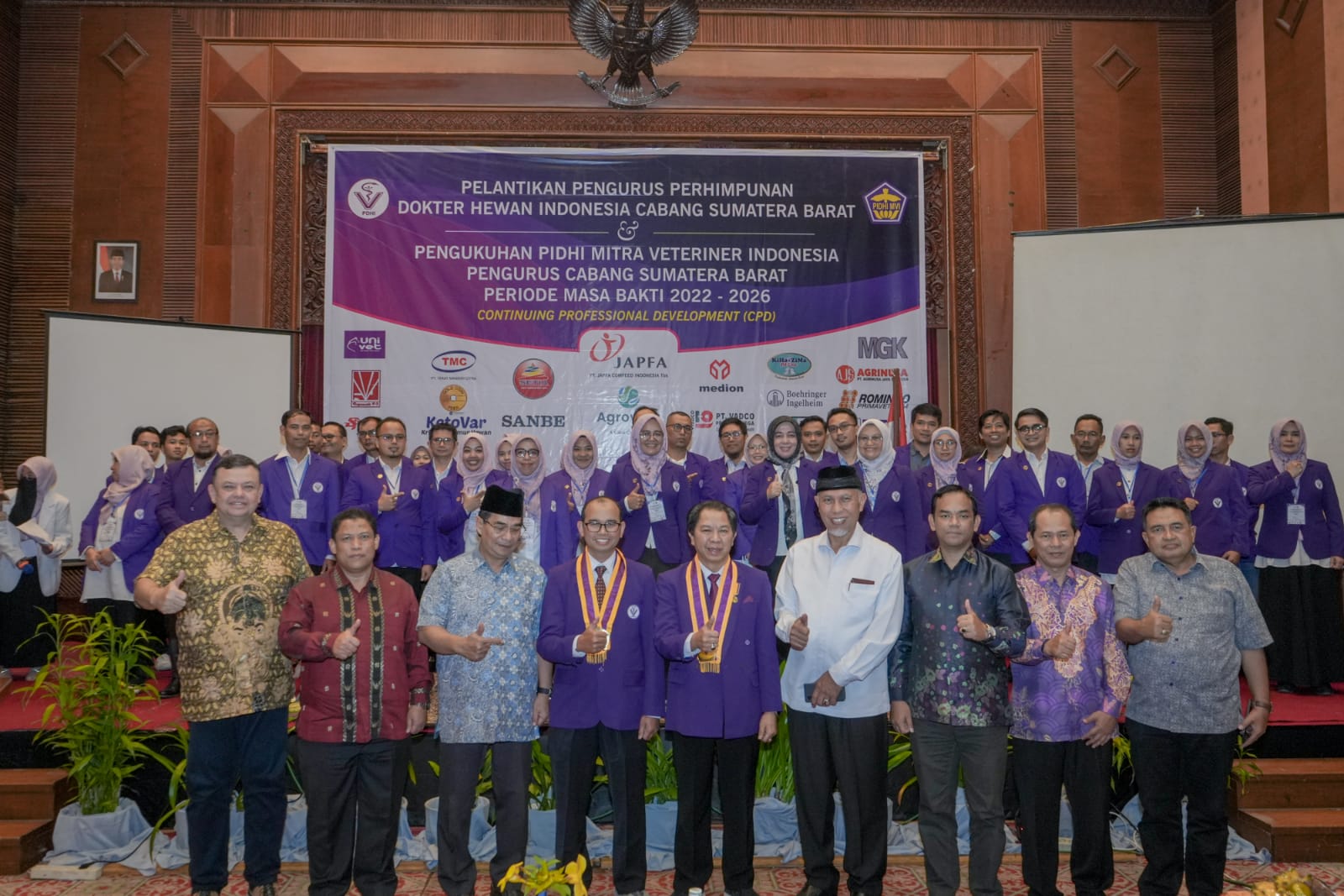 BUKITTINGGI – Gubernur Sumatera Barat, Mahyeldi Ansharullah secara resmi melantik pengurus organisasi profesi Perhimpunan Dokter Hewan Indonesia (PDHI) Provinsi Sumatera Barat periode 2022 – 2026 di Hotel Pusako Bukittinggi, Sabtu, (11/02/2023)