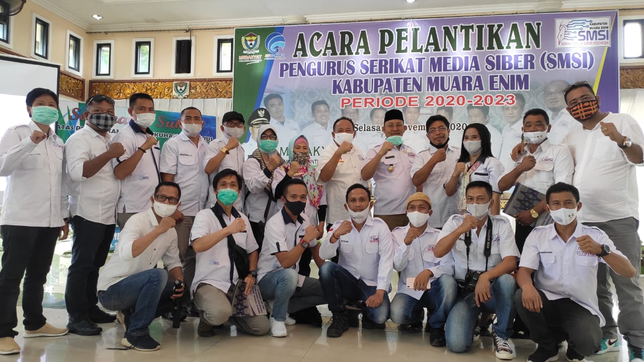 HEADLINESRIWIJAYA.COM. Muara Enim — Kepengurusan Serikat Media Siber Indonesia (SMSI) Muara Enim resmi dilantik oleh pengurus SMSI Sumatera Selatan yang langsung dilakukan oleh Ketua SMSI Sumsel Jhon Heri dan dihadiri oleh Plt. Bupati Muara Enim, Forkopimda, Ketua Bawaslu Muara Enim Suprayitno, SKPD dilingkup Pemkab Muara Enim, Manajer Humas PTBA Iko Gusman, Ketua SMSI se-Indonesia Sumsel, dan Pengurus SMSI Muara Enim yang dilantik, Selasa (03/11/2020) di Balai Agung Serasan Sek undang (BASS) kabupaten Muara Enim.