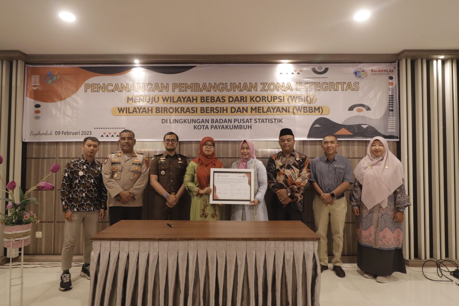 “Selanjutnya pada kesempatan ini, saya juga mengapresiasi dan mendukung penuh pelaksanaan Zona Integritas Menuju Wilayah Bebas Dari Korupsi Dan Wilayah Birokrasi Bersih dan Melayani BPS Kota Payakumbuh yang baru saja sama-sama kita saksikanpencanangannya. Kita semua menjadi saksi dan turut bersama-sama mendukung, menginformasikan agar BPS Kota Payakumbuh dapat menjadi Wilayah Bebas dari Korupsi dan Wilayah Birokrasi Bersih dan Melayani,” Terang Cece