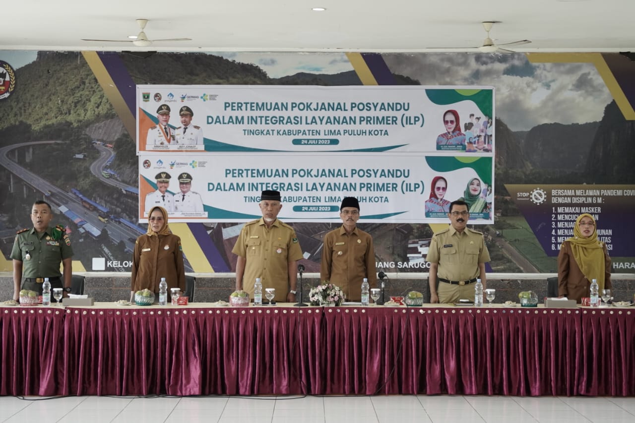 Limapuluh Kota,  — Pemerintah Provinsi Sumatera Barat melalui Dinas Kesehatan Provinsi melakukan Pertemuan Penguatan Kelompok Kerja Operasional Pembinaan Pos Pembinaan dan Pelayanan Terpadu (Pokjanal Posyandu) dalam Integrasi Layanan Primer (ILP) Tingkat Kabupaten/Kota, Provinsi Sumatera Barat Tahun 2023 di Aula kantor Bupati Sarilamak, Senin, (24/07/2023). Dibuka langsung oleh Gubernur Mahyeldi, Kabupaten Limapuluh Kota jadi Kota/Kabupaten perdana dalam pelaksanaan pertemuan kader Pokjanal Posyandu di Sumatera Barat. Pertemuan tersebut diselenggarakan dalam rangka mendukung pencegahan dan pengendalian penyakit tidak menular (PTM) serta percepatan penemuan deteksi dini faktor resiko PTM dan integrasi layanan primer (ILP) di Sumatera Barat. Turut hadir dalam pertemuan, Bupati Limapuluh Kota Safaruddin Dt.Bandaro Rajo, Sekretaris Daerah Limapuluh Kota Widya Putra, Kepala Dinas Kesehatan Sumbar Lila Yanwar, Kepala Dinas Kesehatan Limapuluh Kota Yulia Masna, sejumlah Kepala perangkat daerah, Organiasi profesi PPNI, IBI,PERSAGI, Wali Nagari se Limapuluh Kota dan Kepala Puskesmas se Limapuluh Kota.