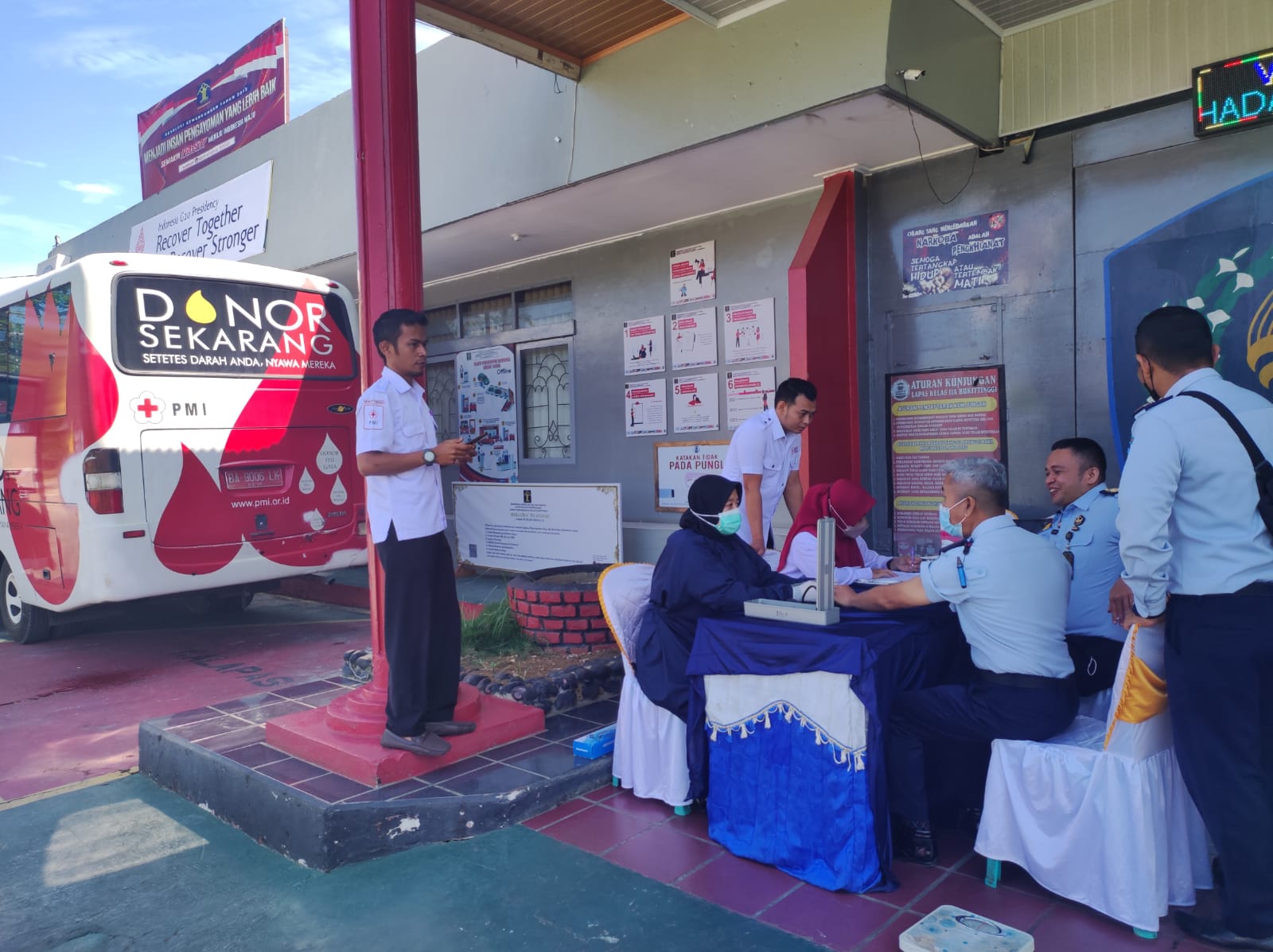 Salah satunya yakni mengadakan acara donor darah yang bekerja sama dengan Palang Merah Indonesia (PMI) Kota Bukittinggi, Kegiatan ini berlangsung di halaman Lapas Kelas IIA Bukittinggi, Kamis(24/03/2022).