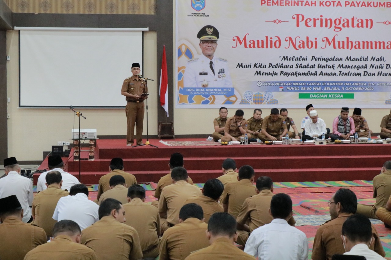 Payakumbuh—Pemerintah Kota Payakumbuh menggelar peringatan Maulid Nabi Muhammad SAW Tahun 1444 Hijriah/2022 Masehi, di Aula Ngalau Lt. 3 Kantor Balai Kota Payakumbuh, Selasa (11/10/2022)