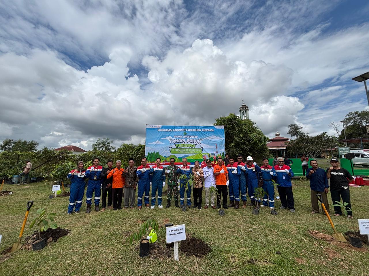Kegiatan dilanjutkan dengan penandatanganan Komitmen Bersama sebagai wujud dukungan terhadap kesiapsiagaan masyarakat. Penanaman pohon secara simbolis juga dilakukan sebagai langkah nyata dalam mendukung pelestarian lingkungan. Materi mitigasi risiko kebakaran hutan dan lahan disampaikan oleh BPBD, diikuti sosialisasi buffer zone oleh Tim HSSE Ramba Field agar masyarakat memahami jarak aman antara bangunan dengan fasilitas produksi migas.