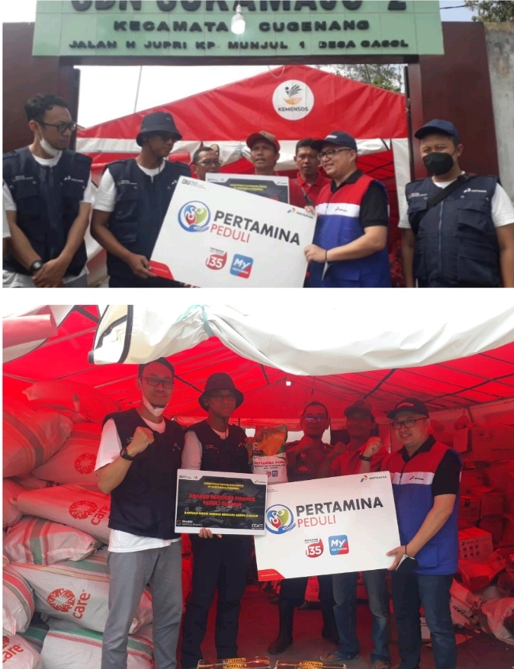 Jakarta, Indonesia – PT Pertamina (Persero) melalui VP Shared Service Finance, dan CCA Shared Service Finance memberikan bantuan untuk korban bencana gempa cianjur untuk posko utama Pertamina Peduli yang berlokasi di SDN Sukamaju Kecamatan Cugenang Jalan H. Jupri Kampung Munjul 1 Desa Gasol, Cianjur, Jawa Barat.(11/12/2022)