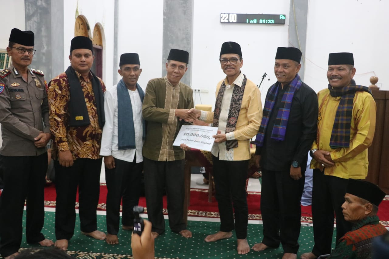 Dalam kunjungan tersebut, Bupati Safaruddin yang didampingi angggota DPRD Kabupaten Limapuluh Kota Wirman Dt. Pangeran dan Doni Ikhlas serta Ketua Baznaz Limapuluh Kota Yulius, Camat Lareh Sago Halaban Wahyu Marmora, berkesempatan menyerahkan bantuan pembangunan mesjid senilai Rp 20.000.000 dan bantuan paket Ramadhan dari Baznas kepada sejumlah warga.