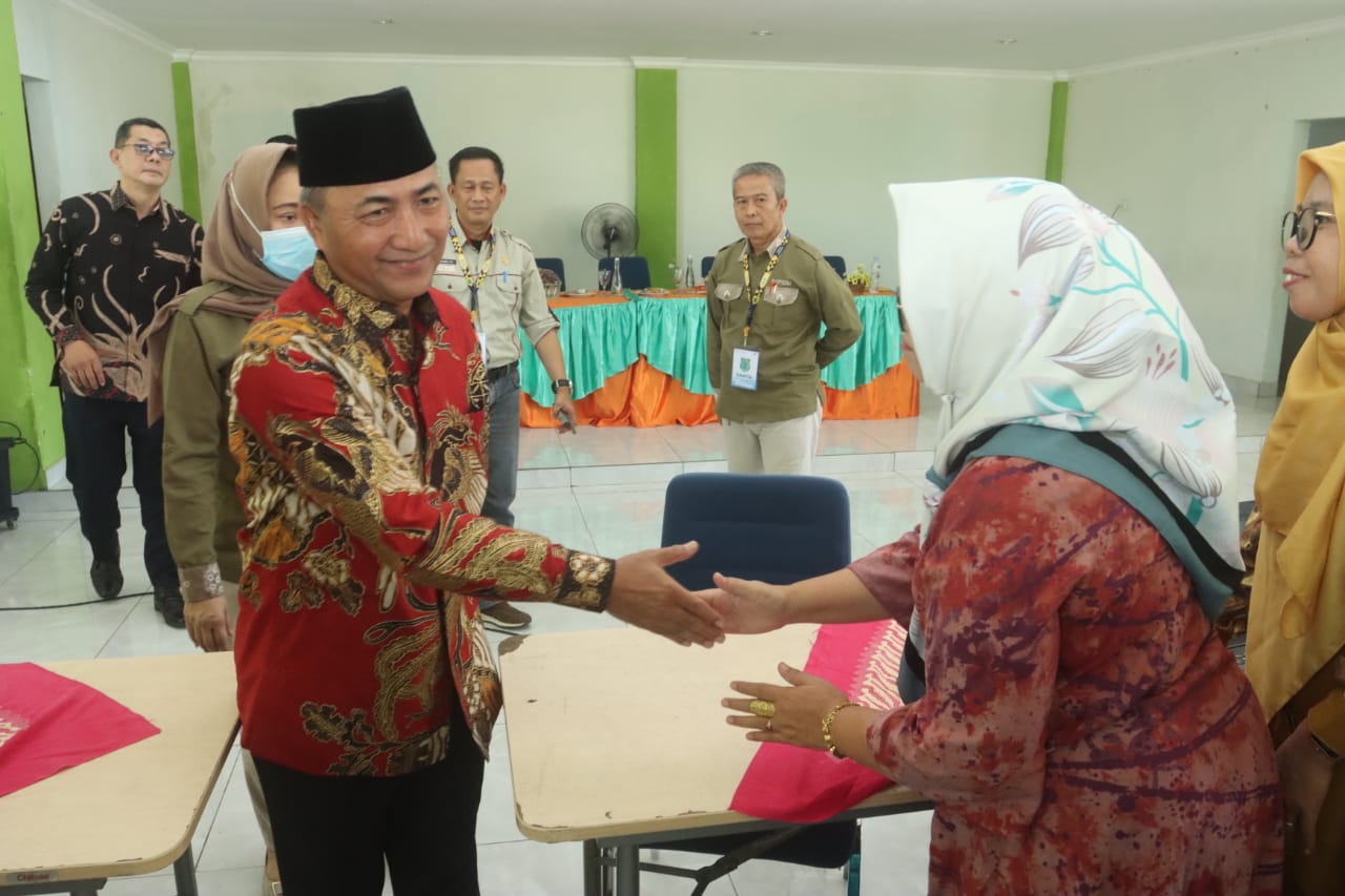 SEKAYU- Mengenakan batik corak merah, Minggu (27/11/2022) pagi kedatangan Pj Bupati H. Apriyadi Mahmud membuat ratusan guru yang mengikuti Pelaksanaan Observasi Calon PPPK JF Guru Kategori P2 dan P3 Kabupaten Musi Banyuasin tahun 2022 Zona I di SMP Negeri 6 Unggul Sekayu terkejut.