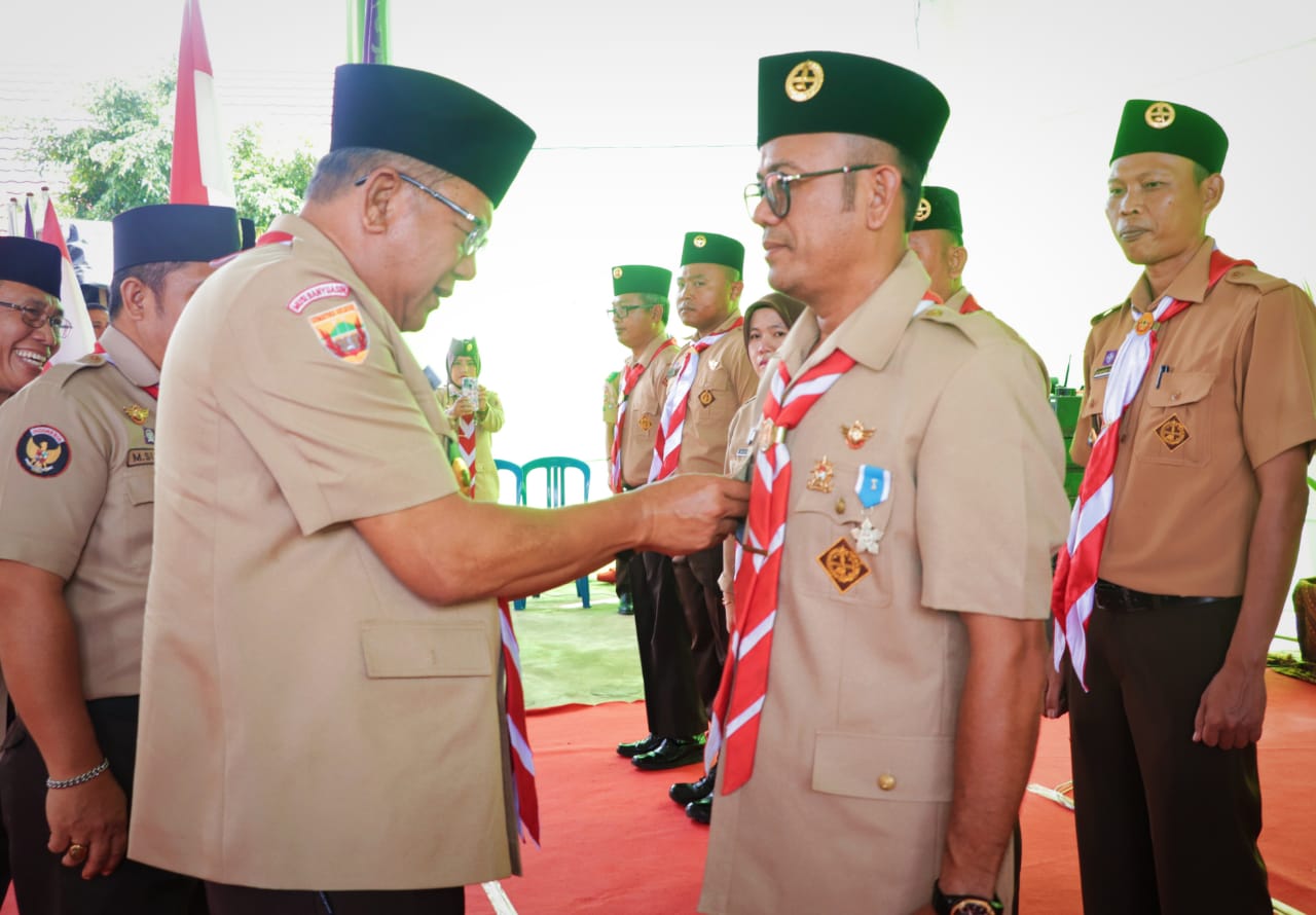 SANGA DESA, – Penjabat Sekretaris Daerah Kabupaten Musi Banyuasin Musni Wijaya SSos MSi selaku Ketua Kwartir Cabang Gerakan Pramuka Muba melakukan pelantikan Pengurus Majelis Pembimbing Ranting, Kwartir Ranting dan Dewan Kerja Ranting Gerakan Pramuka Kecamatan Sanga Desa masa bakti 2022-2025, di Aula SMK Negeri 1 Sanga Desa, Selasa (4/10/2022).